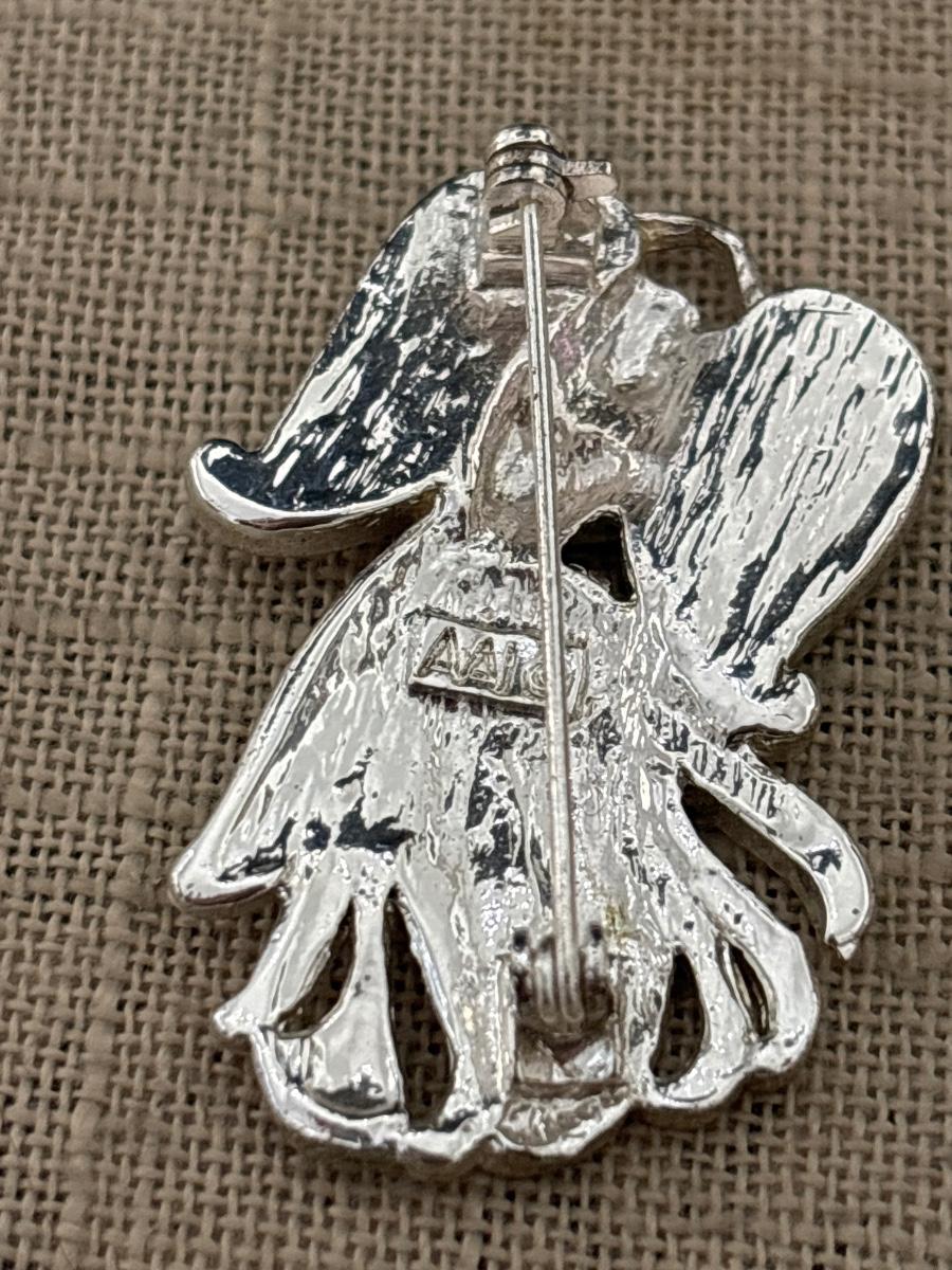 Vintage Signed AAI Angel Brooch Pin Glitter Enamel Wings Red Heart Silver Tone