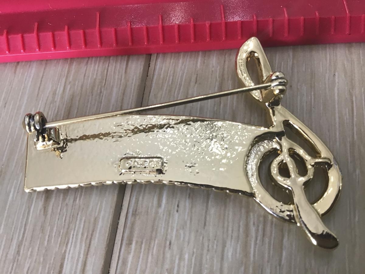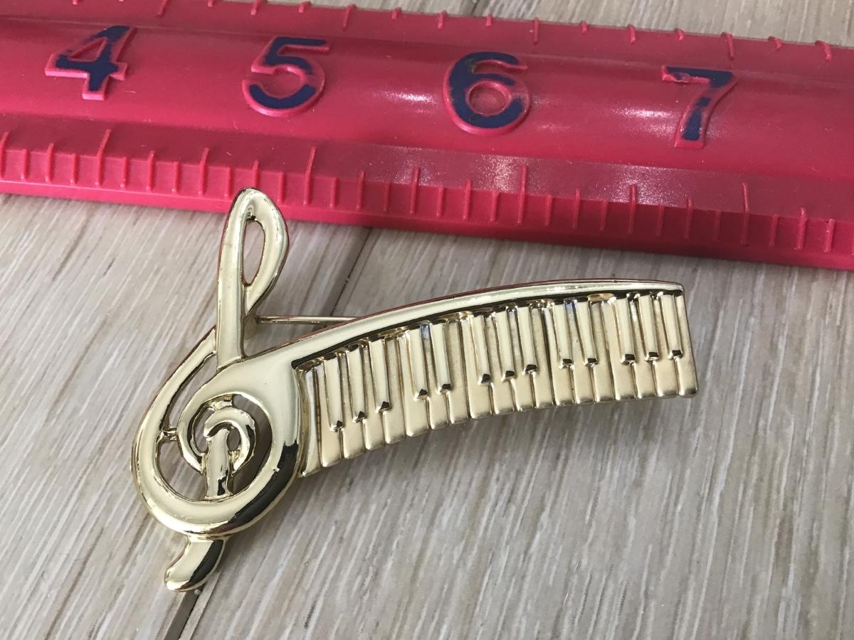 Vintage Signed AJC Brooch Gold Tone Treble Note Music Lover Piano Keyboard