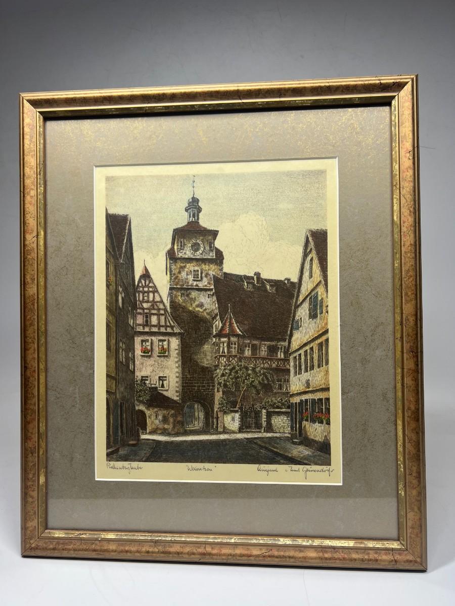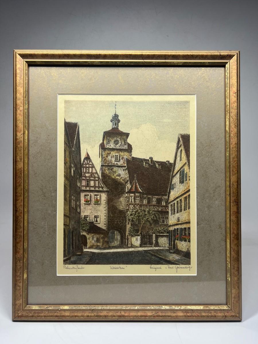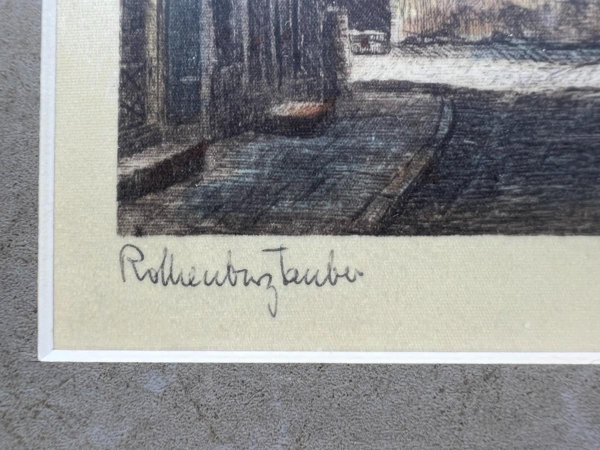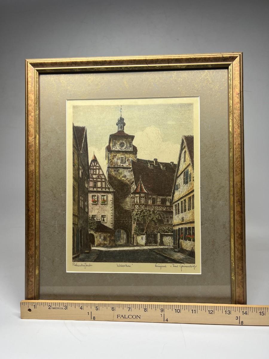 Vintage Signed Art Color Etching German Architecture Rothenberg Tauber Ernst Geissendorfer