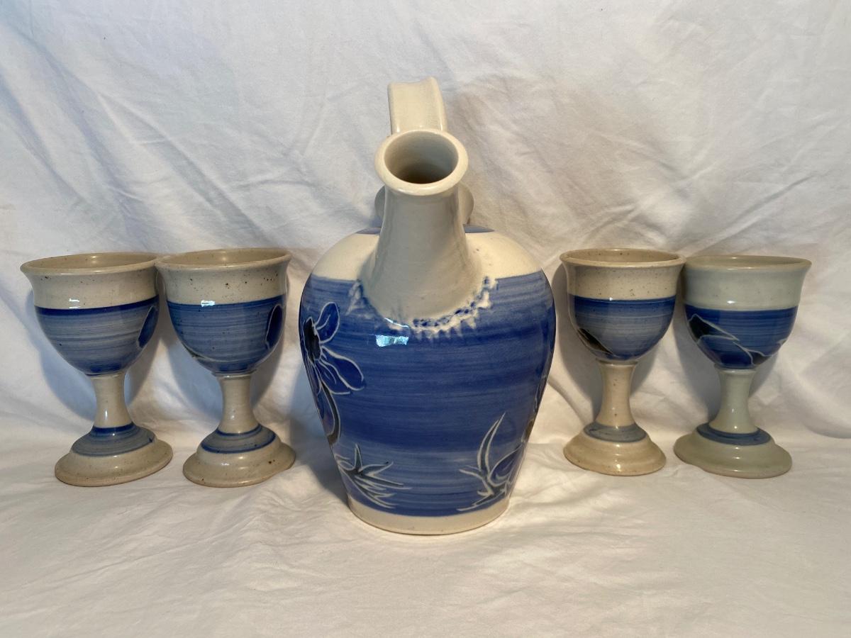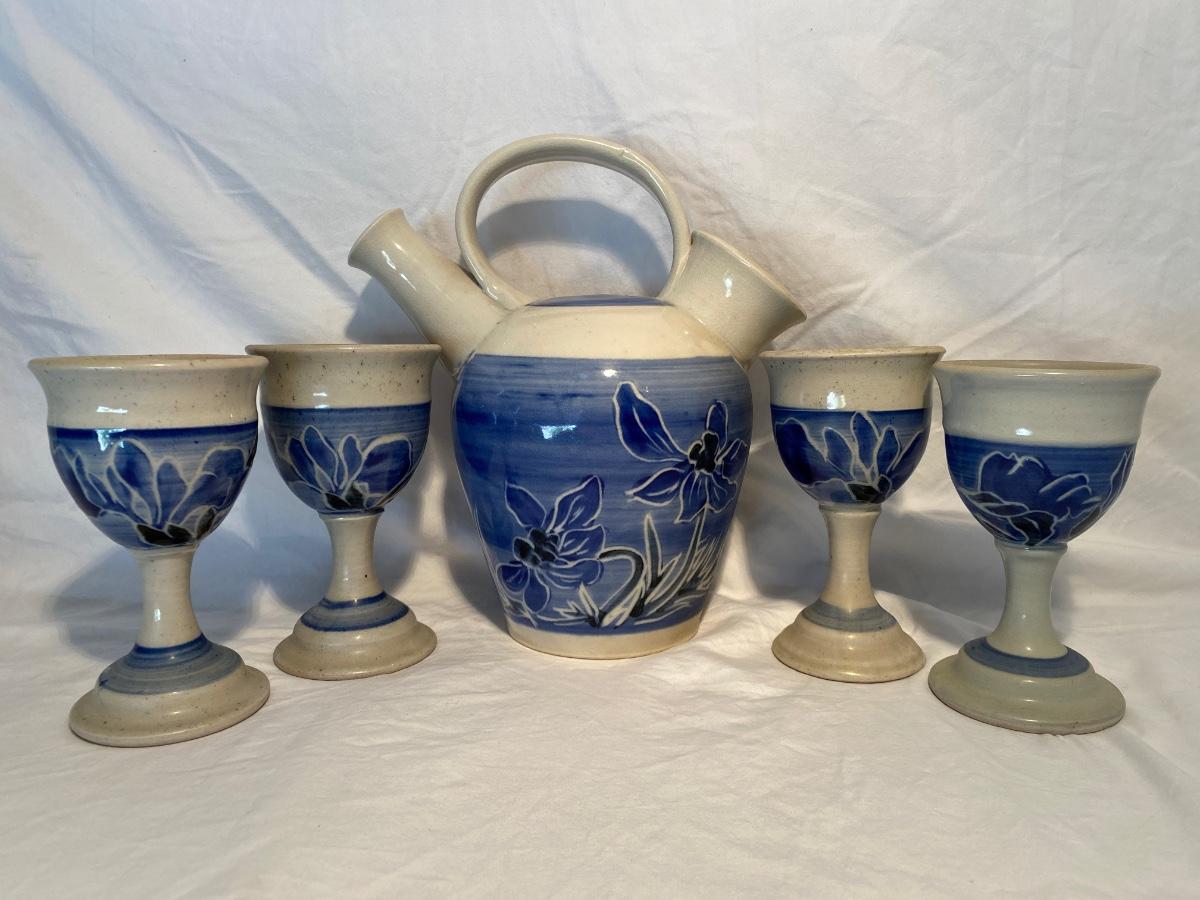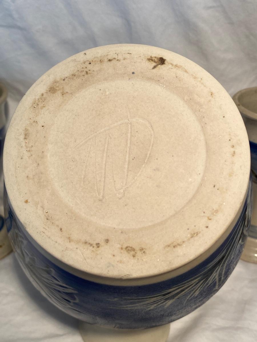Vintage Signed Blue and White Pottery. Preowned and sold as is