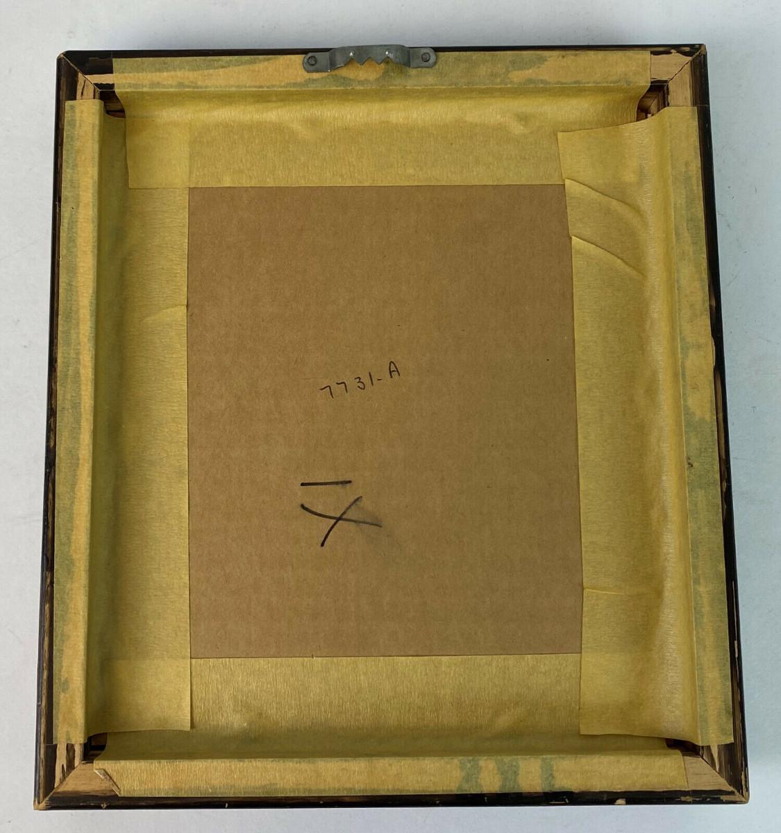 Here is a colored print of an etching that is named and signed but I cannot decipher them? In a vintage wooden frame, missing some brass trim...Looks circa 1960's-70's...Estate find...Appears to be an English or European Cathedral Town? Perhaps you know the location? No damage to the 5 x 3.75" image...there is a moisture stain on right edge of border...Offered with no reserve...