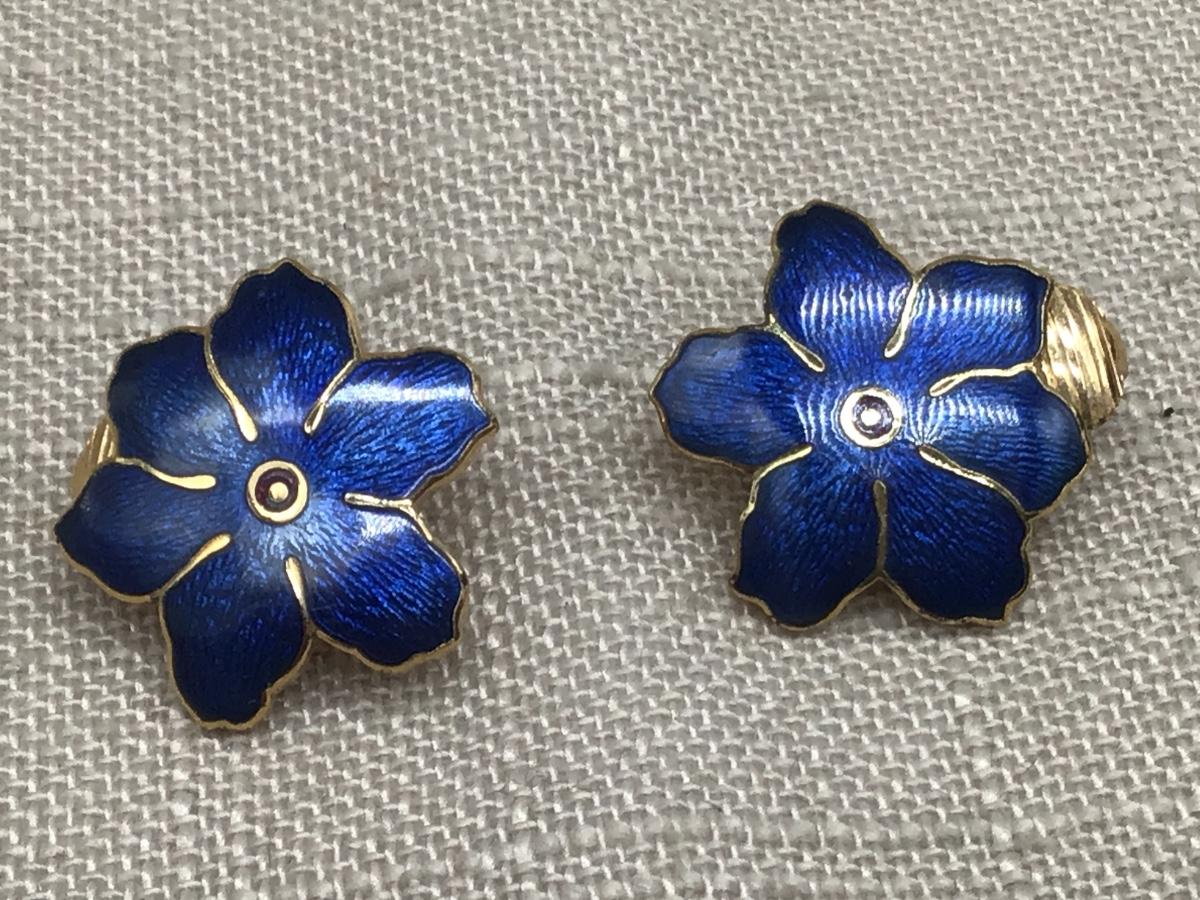 Vintage Signed Fish and Crown Goldtone/ Floral Cloisonne