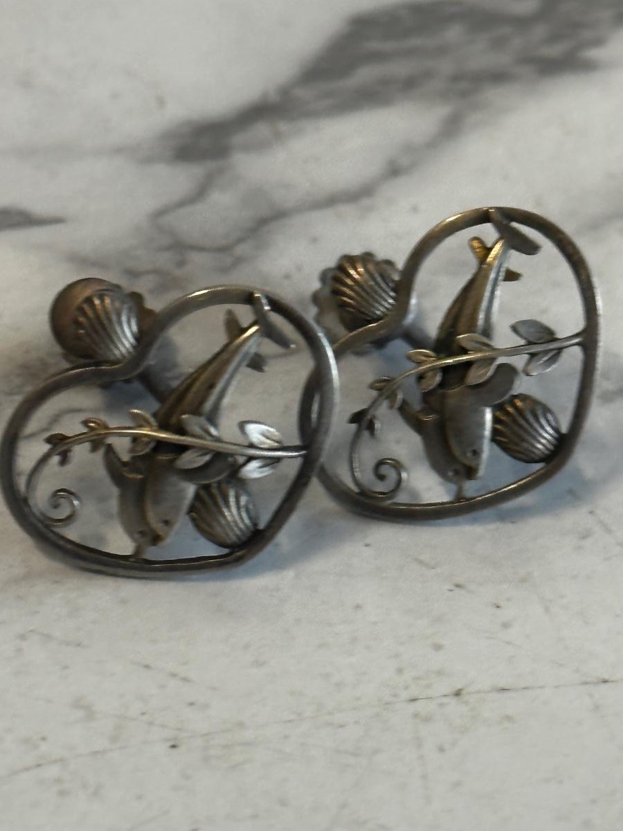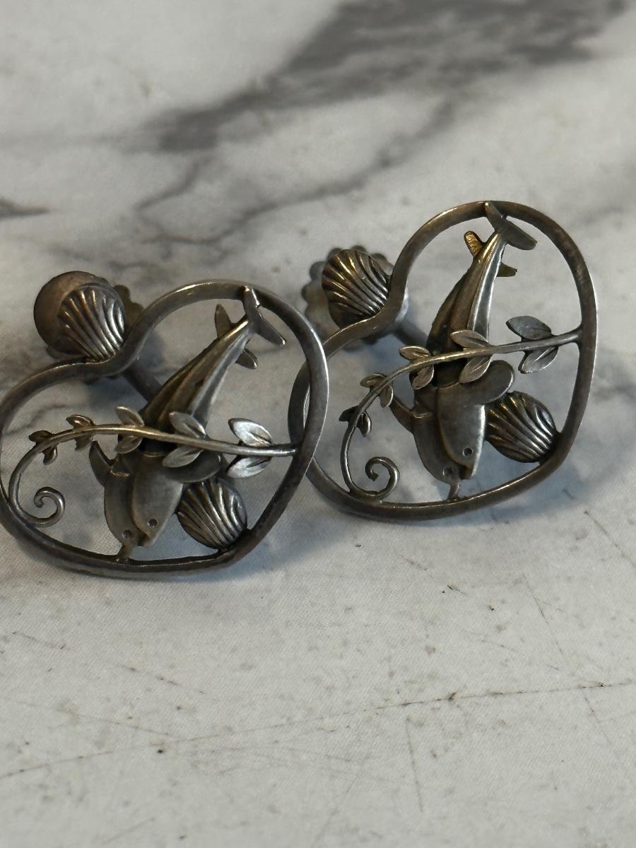 VINTAGE SIGNED GEORG JENSEN DENMARK SCREW ON DOLPHIN EARRINGS
