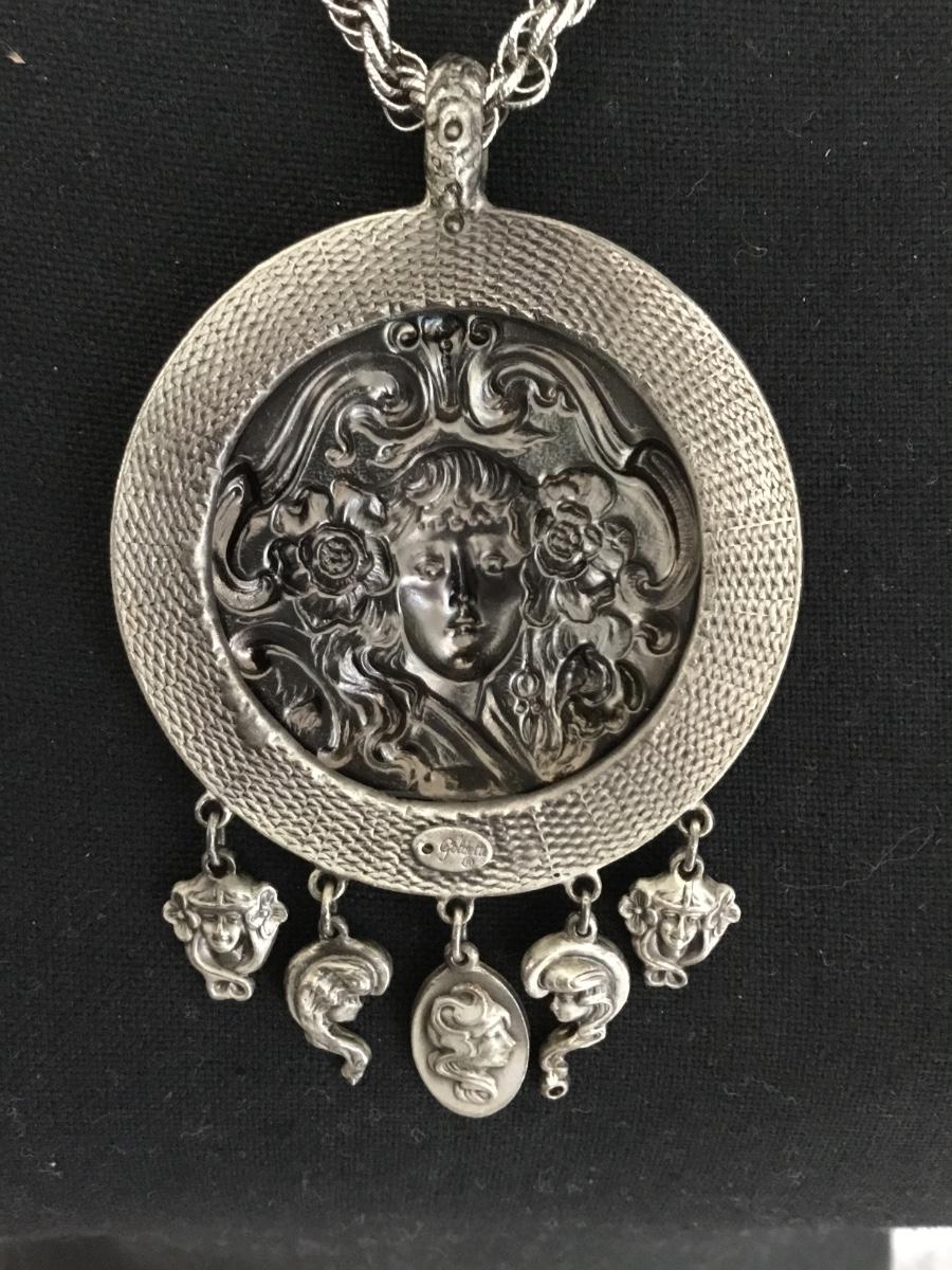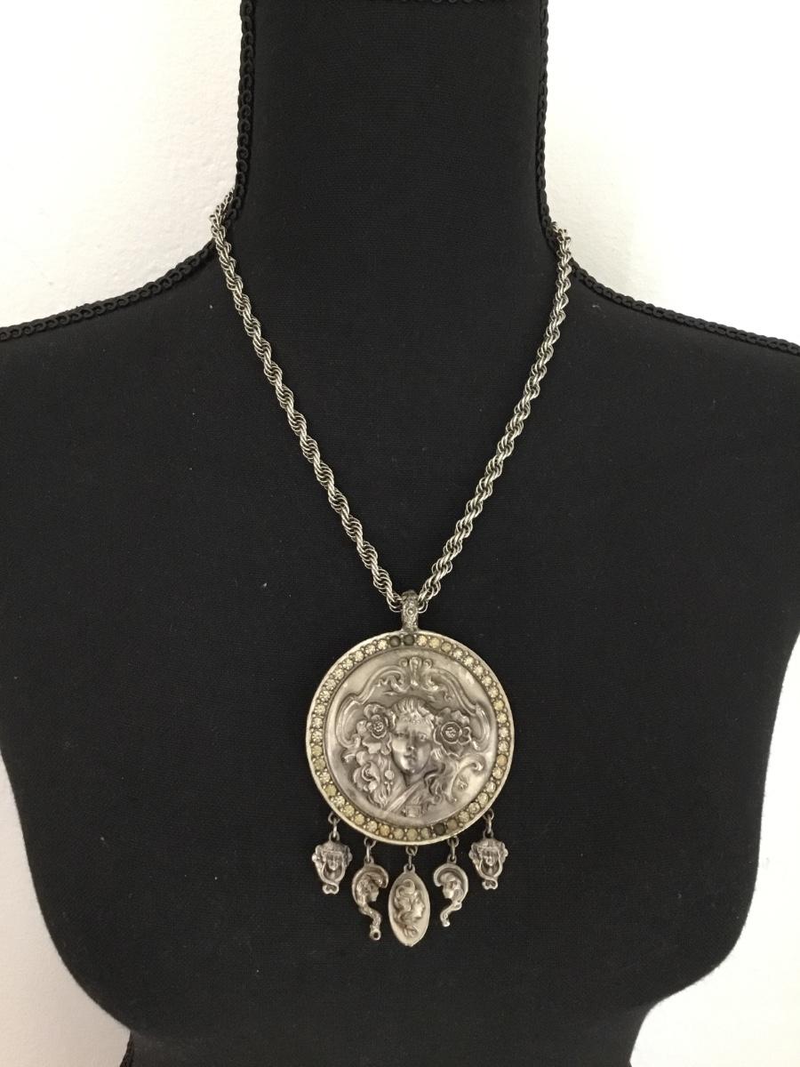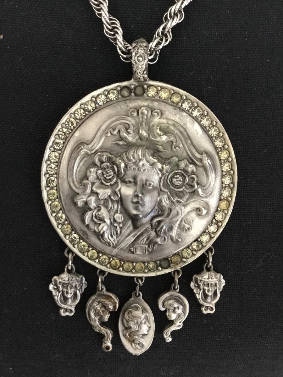 Vintage signed Goldette Art Nouveau lady pendant