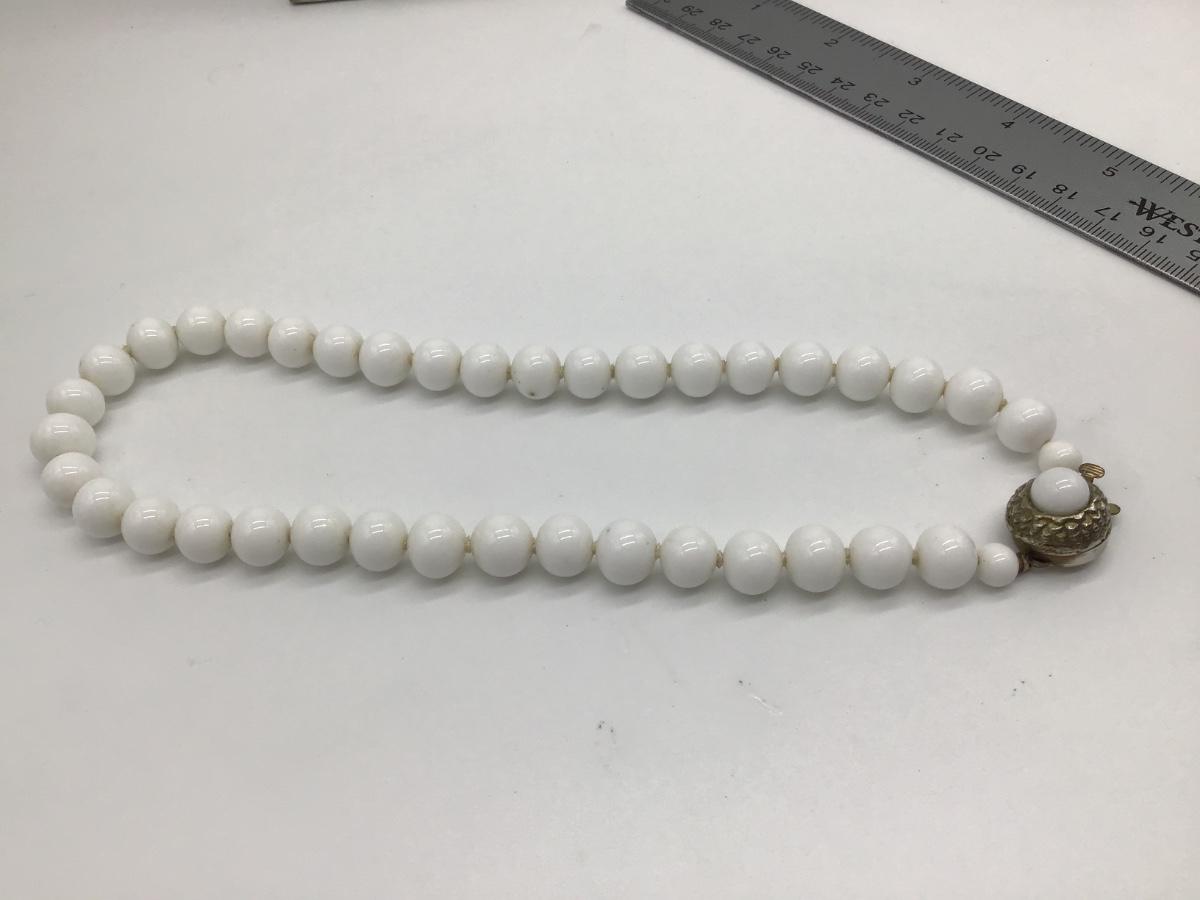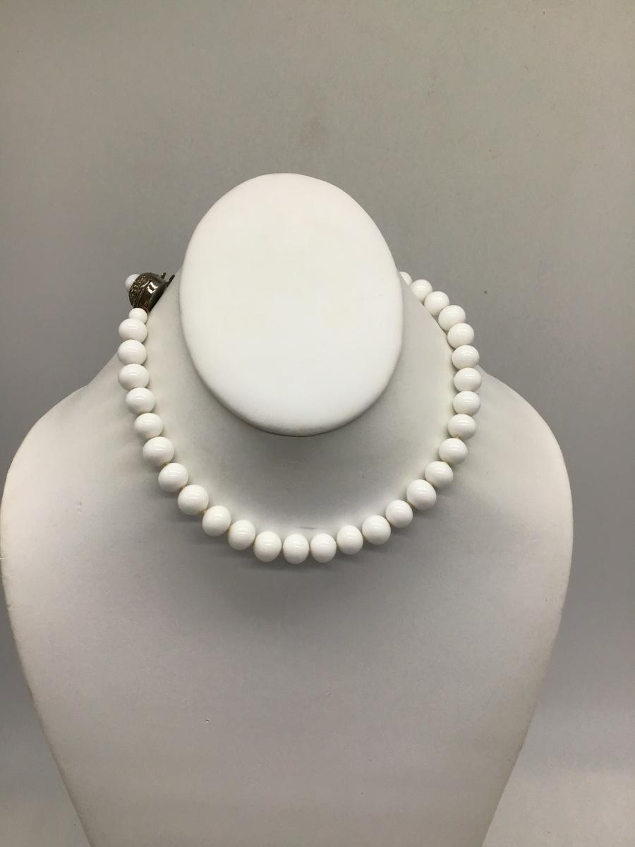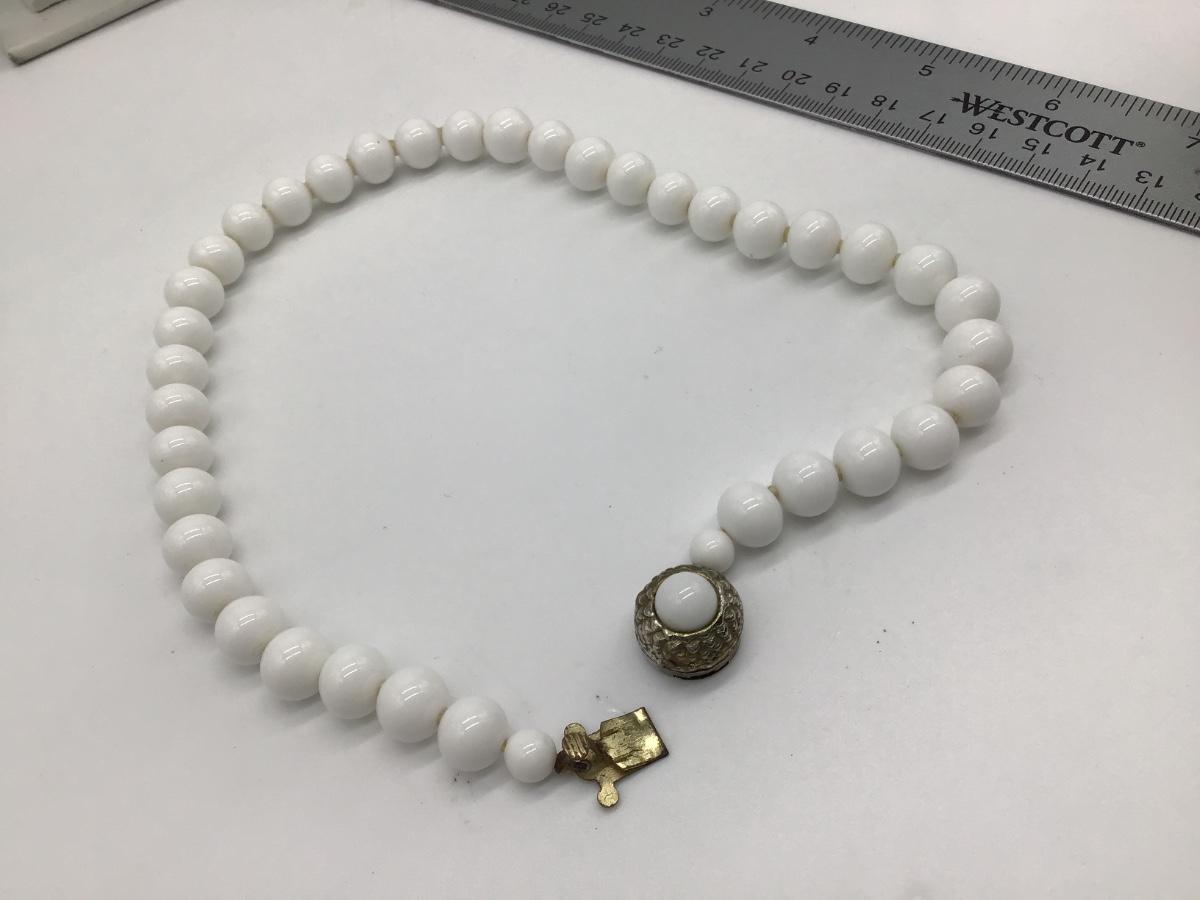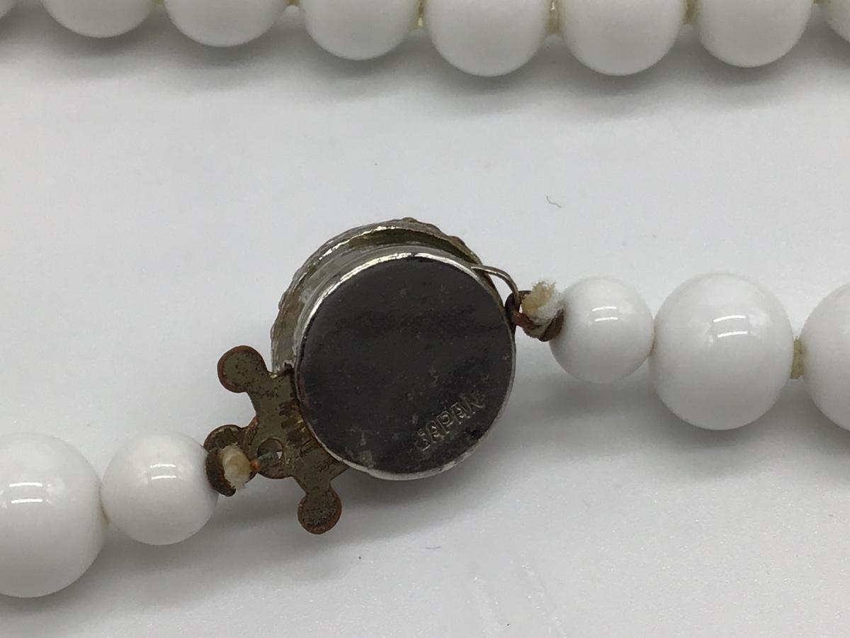 Vintage Signed JAPAN Hand Knotted White Milk GLASS Beaded Choker Necklace