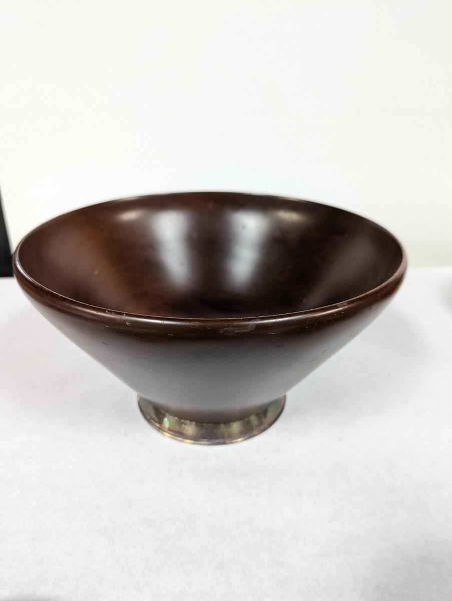 Vintage Signed Jelba Original Mahogany Wood Bowl with Sterling Silver Base