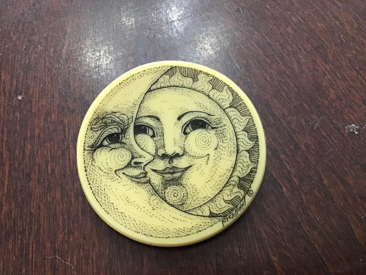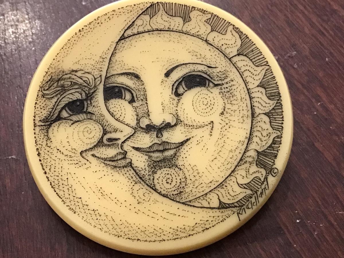 Vintage Signed Kim McClelland Moon Night smile ResinPin or Brooch