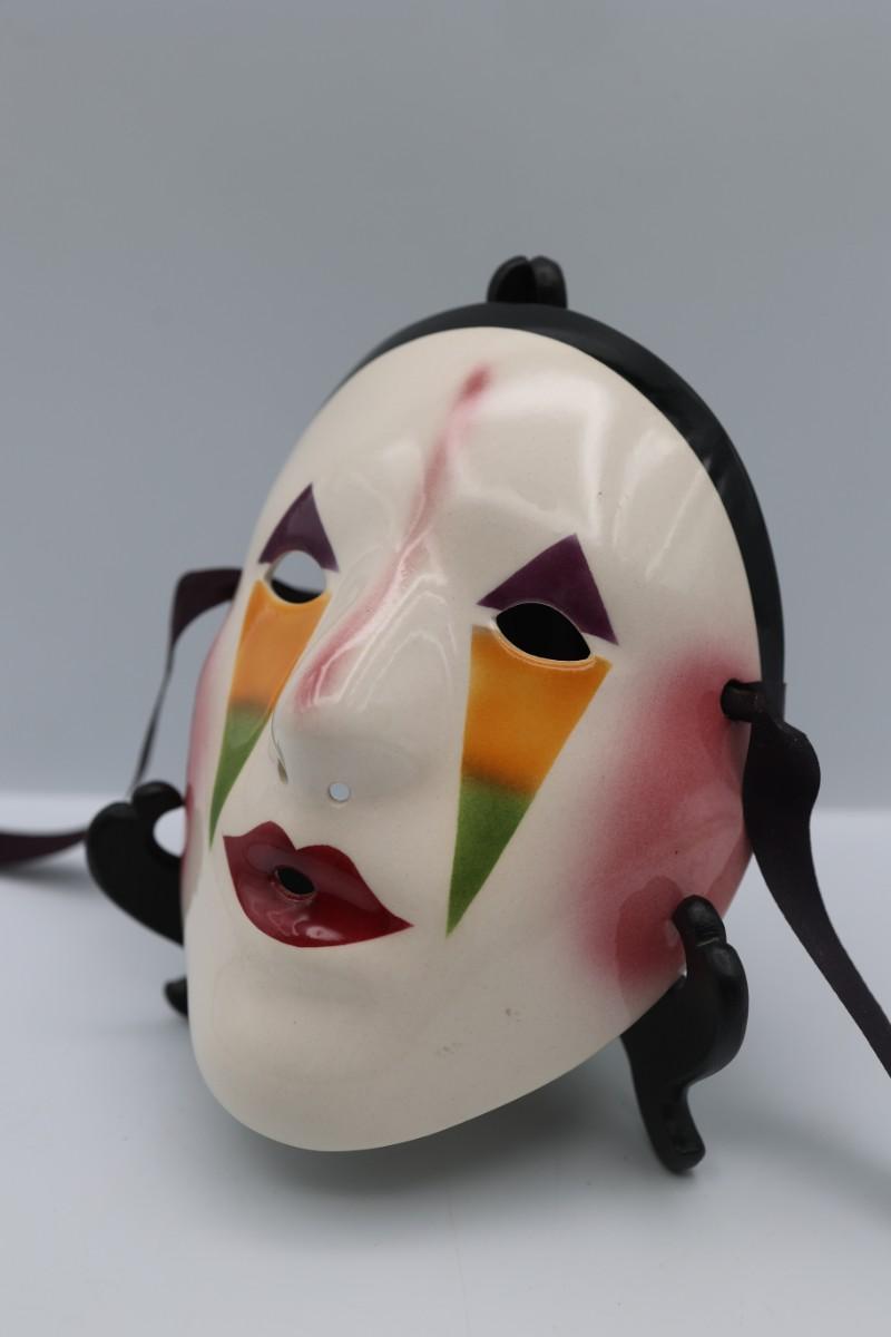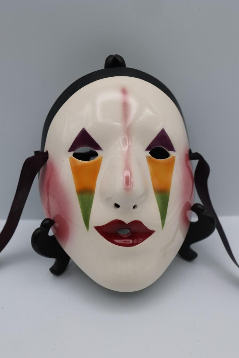Vintage Signed Mardi Gras Ceramic Mask, Fancy Faces
