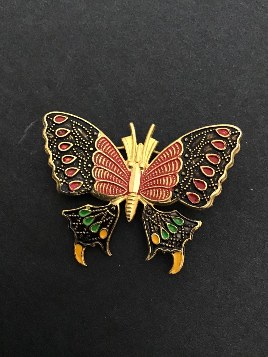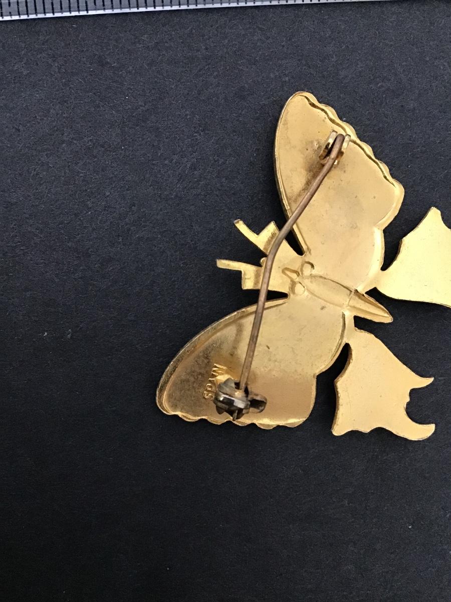 Vintage signed Spain, gold tone, Damascene enamel butterfly pin/brooch