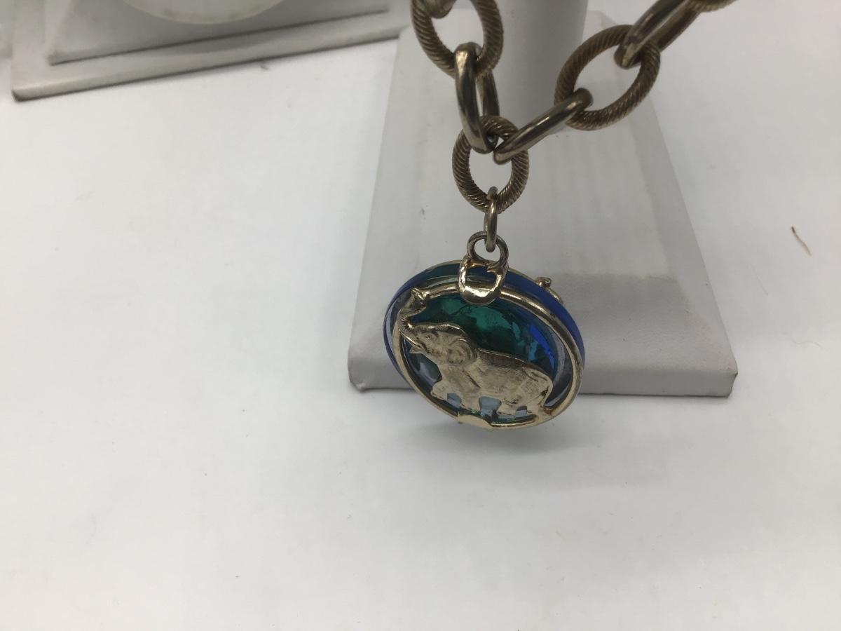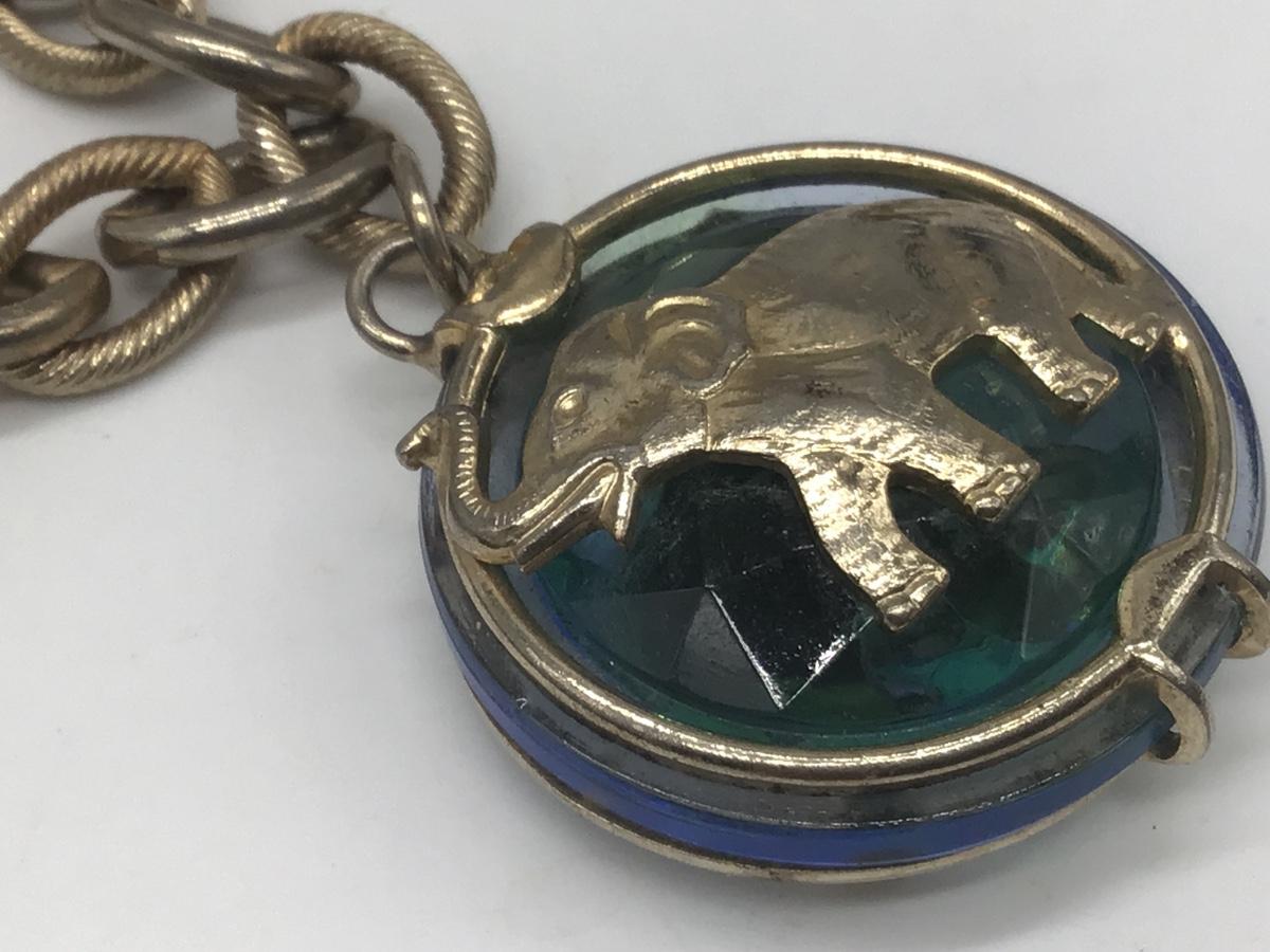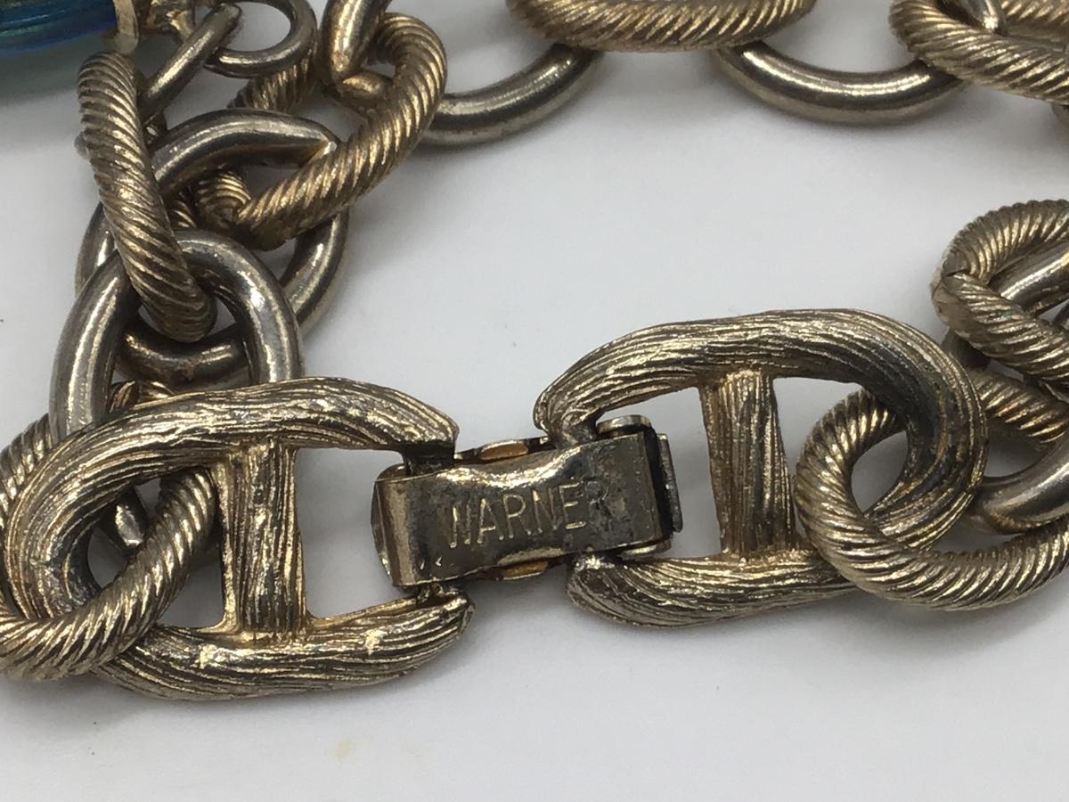 Vintage Signed WARNER Blue Crystal Glass & Gol-tone Elephant Chain Bracelet