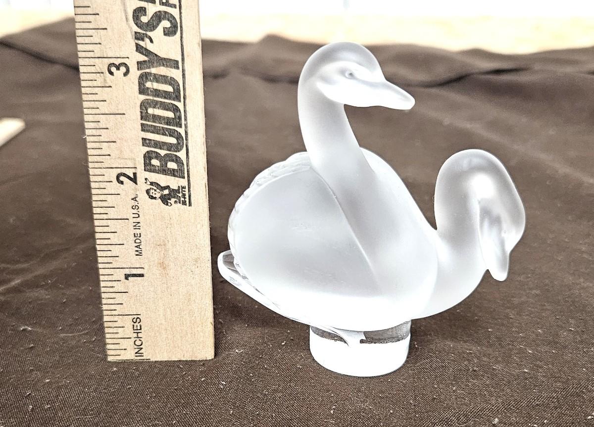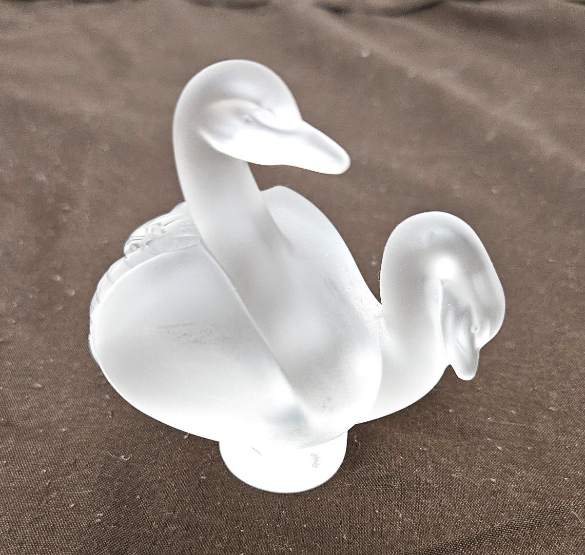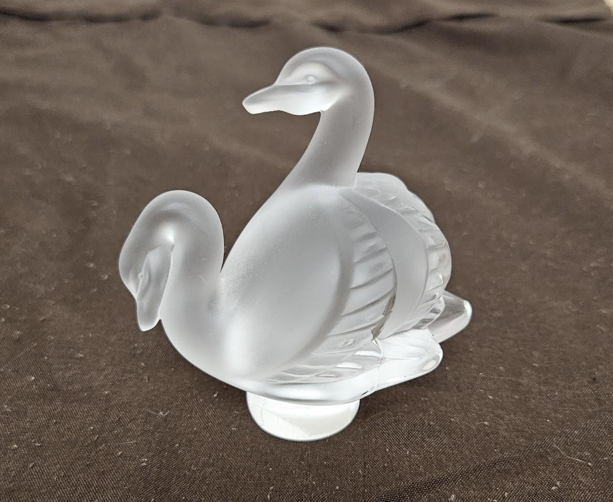 Vintage Signed/Marked Lalique Frosted Glass model of a pair of swans