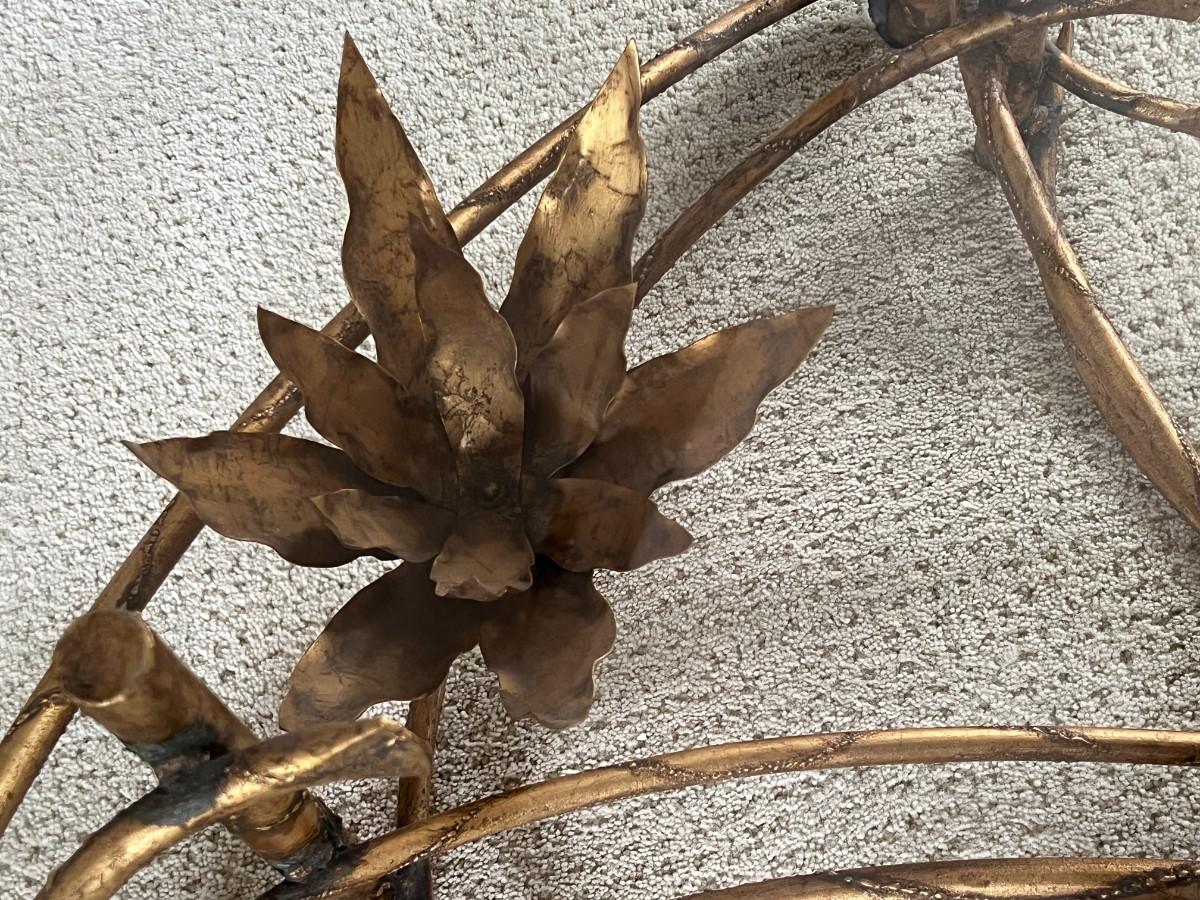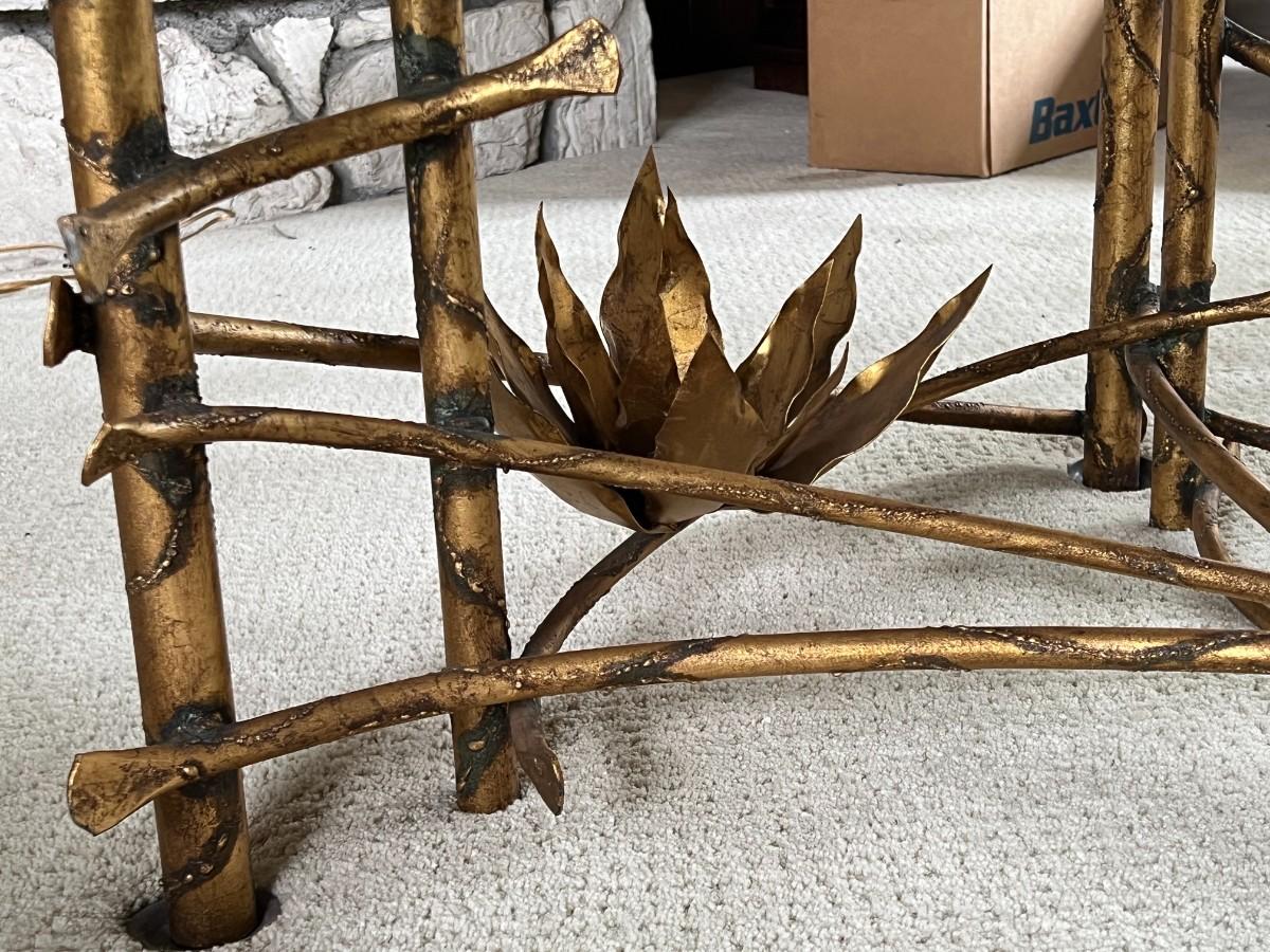 Vintage Silas Seandel sculptured metal Round Glass Top Brutalist Gold Gilt Lotus Coffee Table