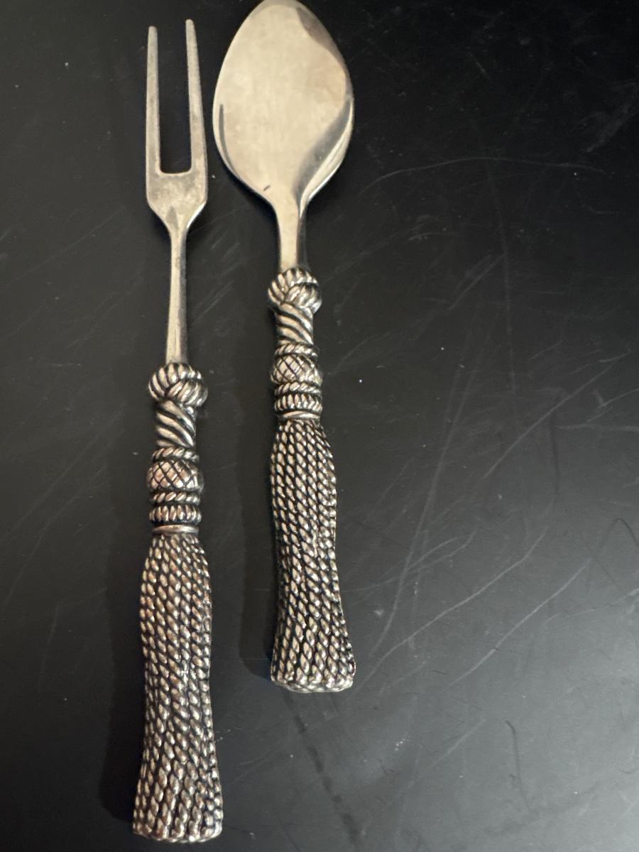 Vintage Silea silver plated serving set with tassel handles!