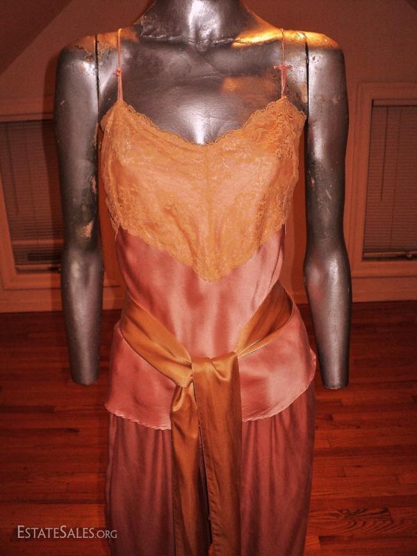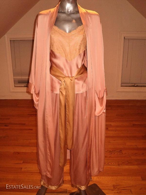 A stunning 3 piece Peignoir set all silk Peau de Soie and antique lace also a sash belt. Gorgeous finish and style some done by hand. In very good vintage condition will need refresh clean for a couple of extremely faded spot