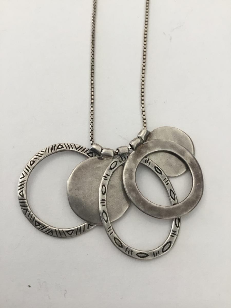 Vintage Silpada sterling, silver, circular hammer, discs and oval chain necklace