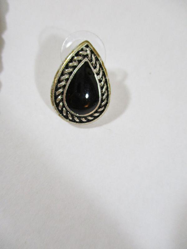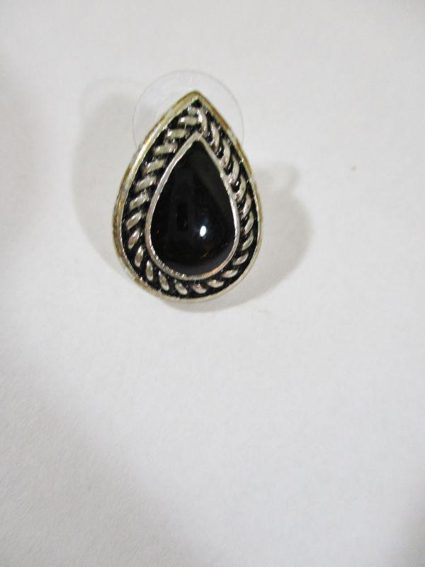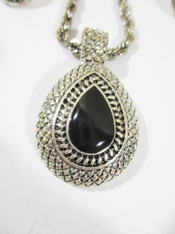 Vintage Silver and Black Oval Costume Set Runway fashion 10" Choker Necklace Adjustable