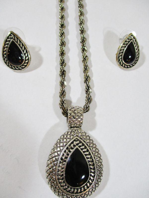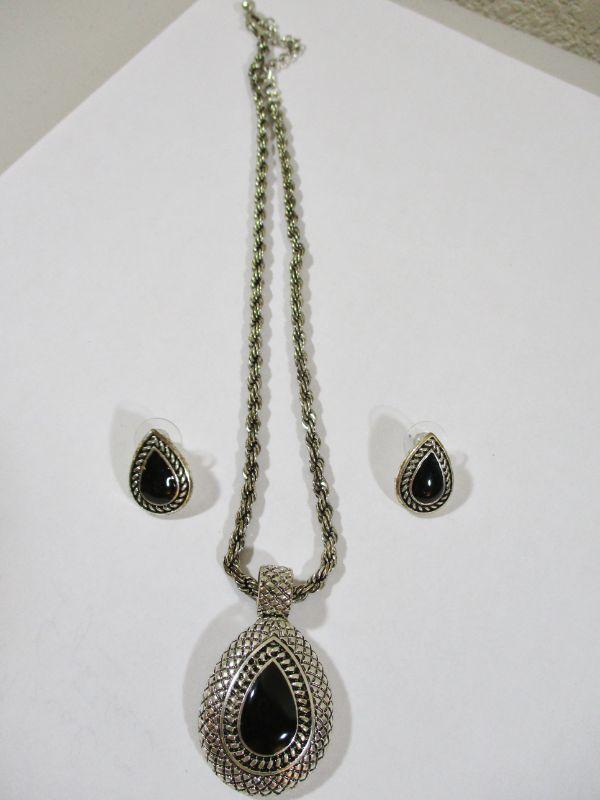 Vintage Silver and Black Oval Costume Set Runway fashion 10" Choker Necklace Adjustable