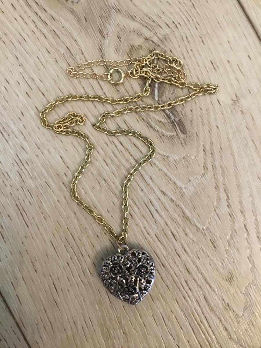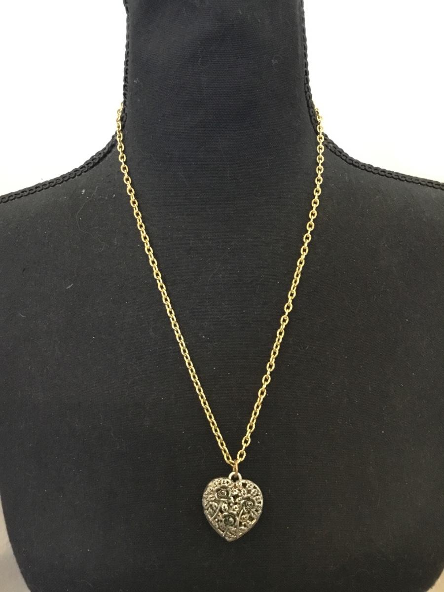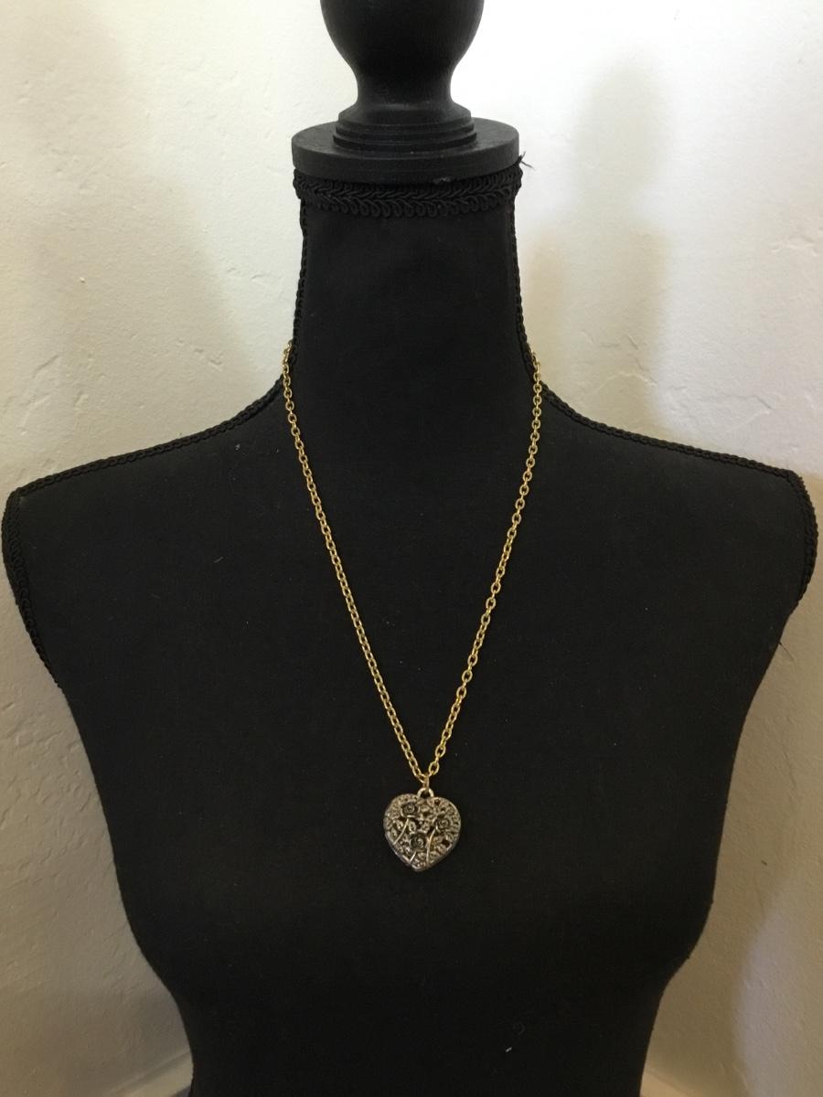 Vintage, silver and gold, toned, puffy, heart vintage necklace