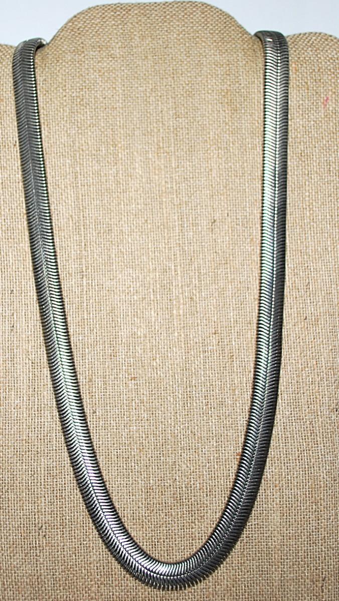 Vintage Silver Colored Flexible SNAKE NECKLACE with Snap-Clip Clasp 28" L