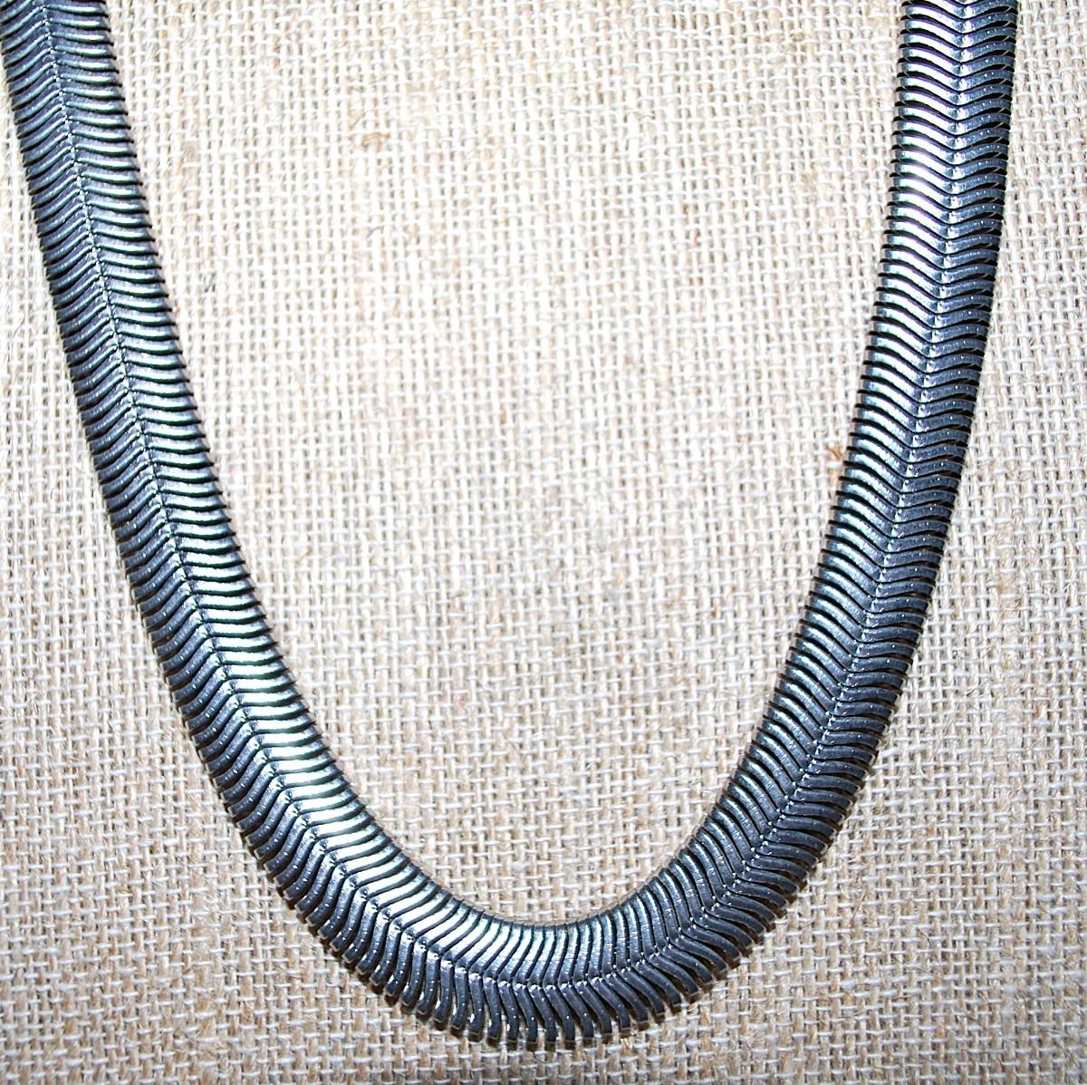 Vintage Silver Colored Flexible SNAKE NECKLACE with Snap-Clip Clasp 28" L