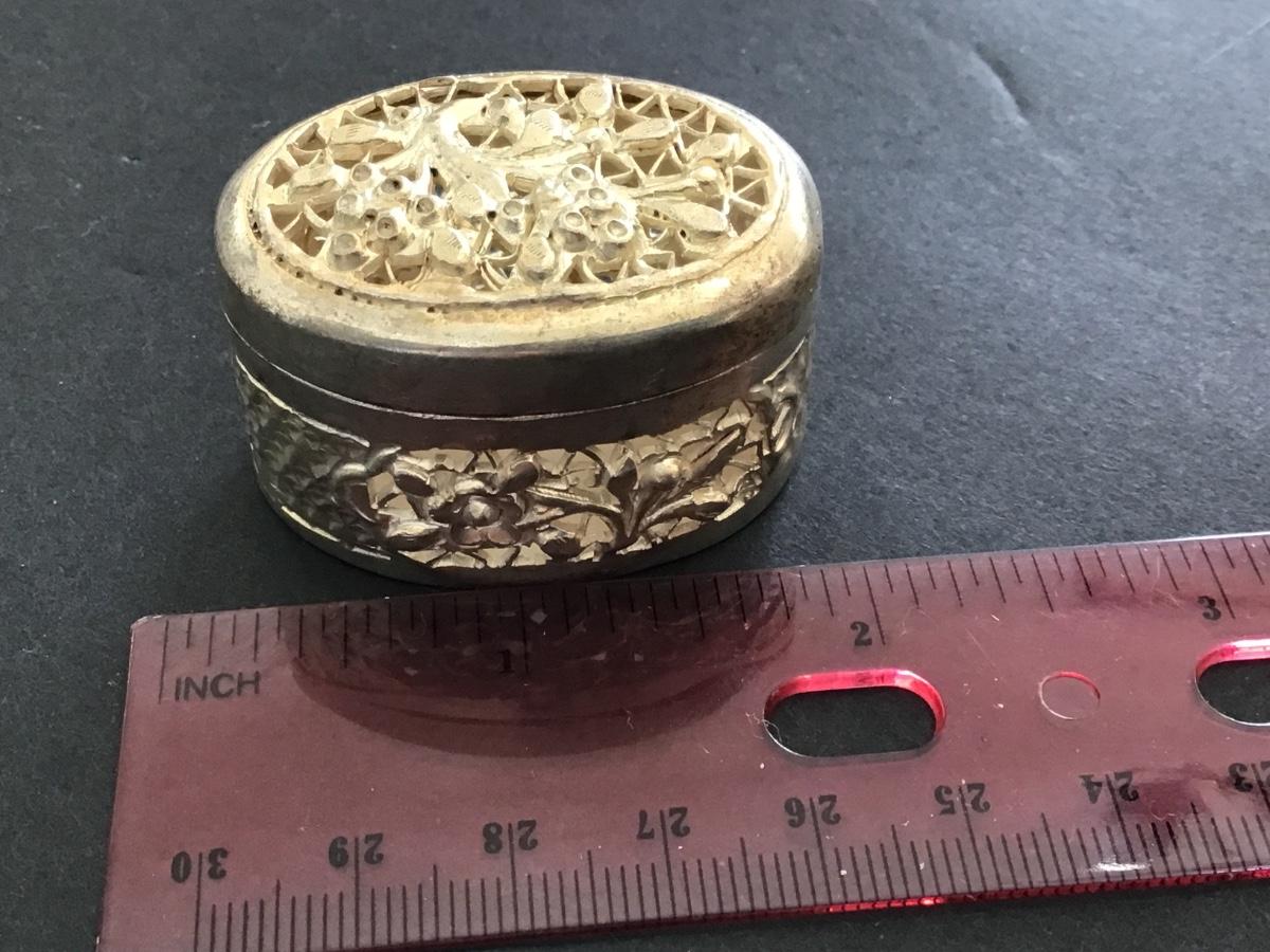 Vintage Silver Filagree Trinket Box. No Marks. Non Magnetic