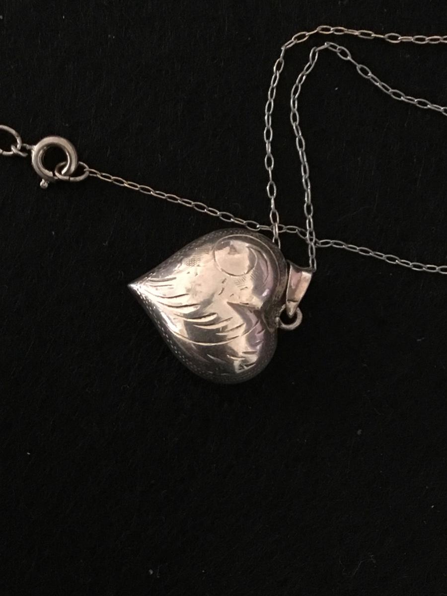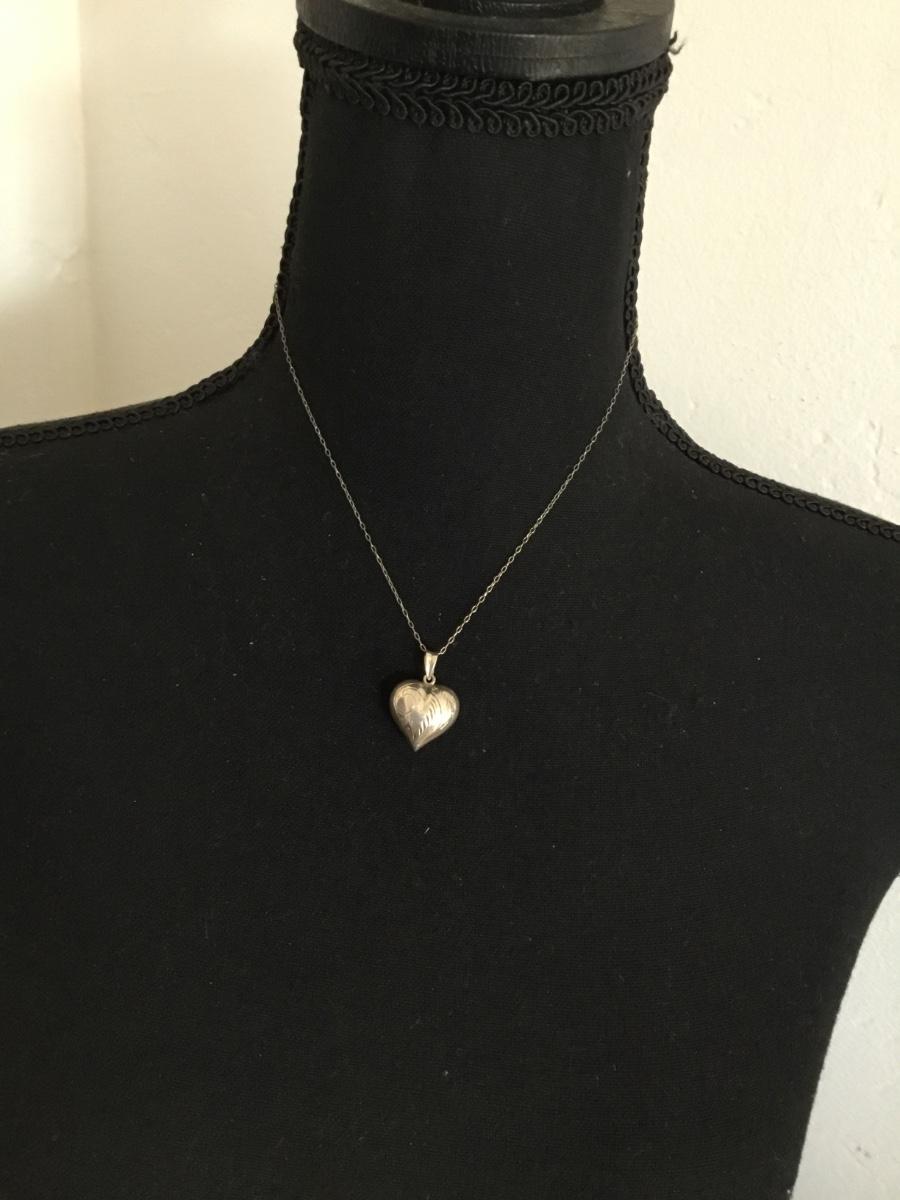 Vintage Silver Heart Pendant And Chain