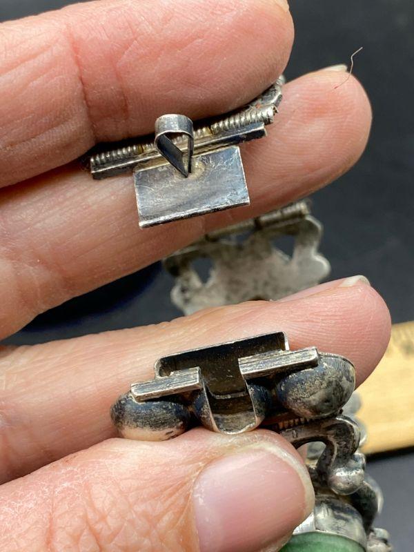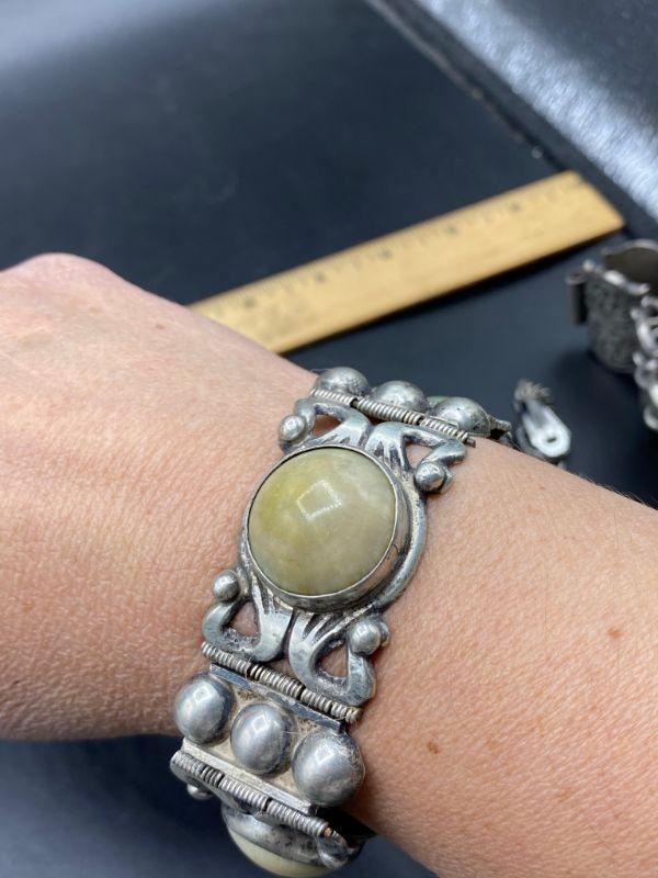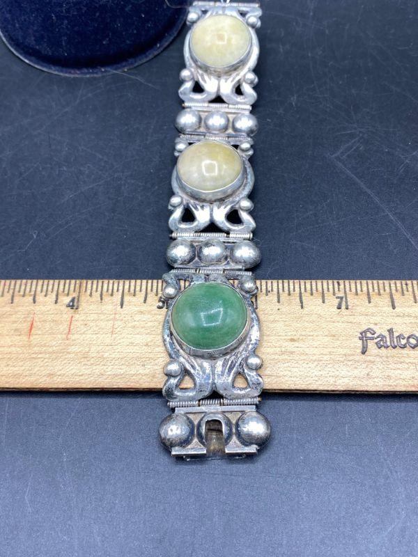 Vintage Silver Hinged Panel Bracelet Natural Stone Cabochon Centers Mexico