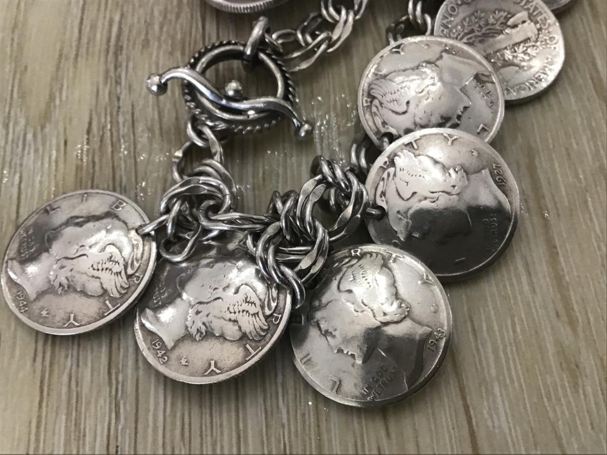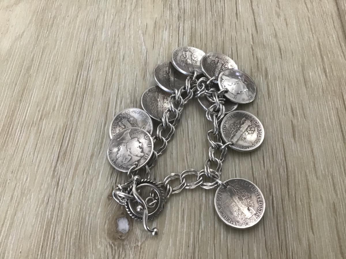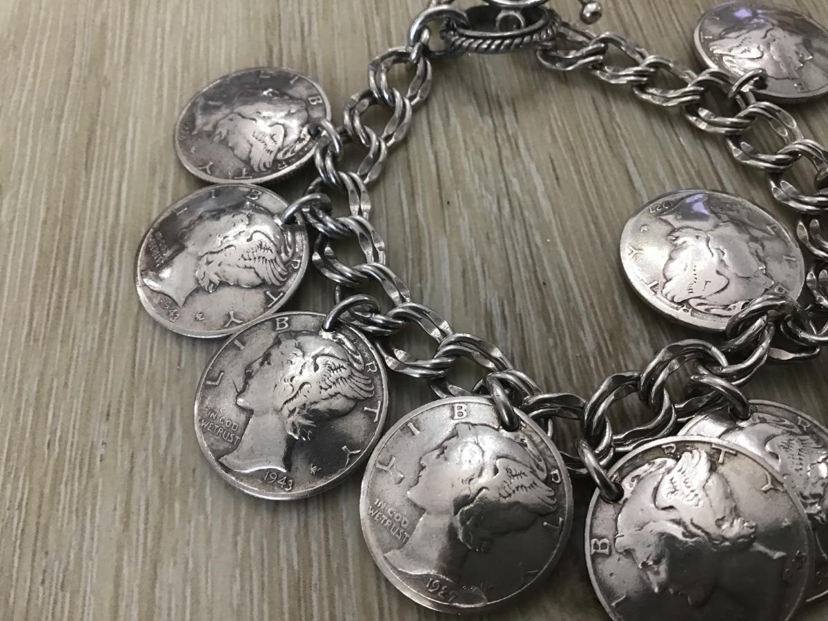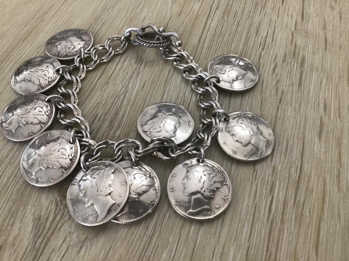 Vintage Silver Mercury Dime Charm Bracelet 10 Dimes 1927 up