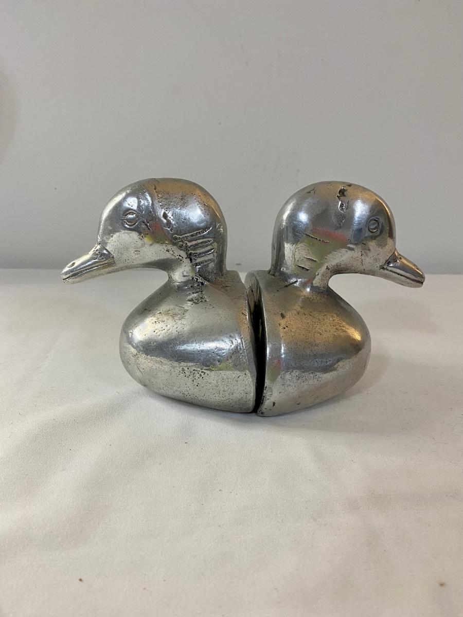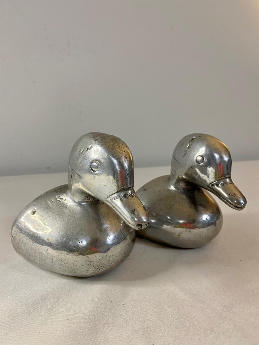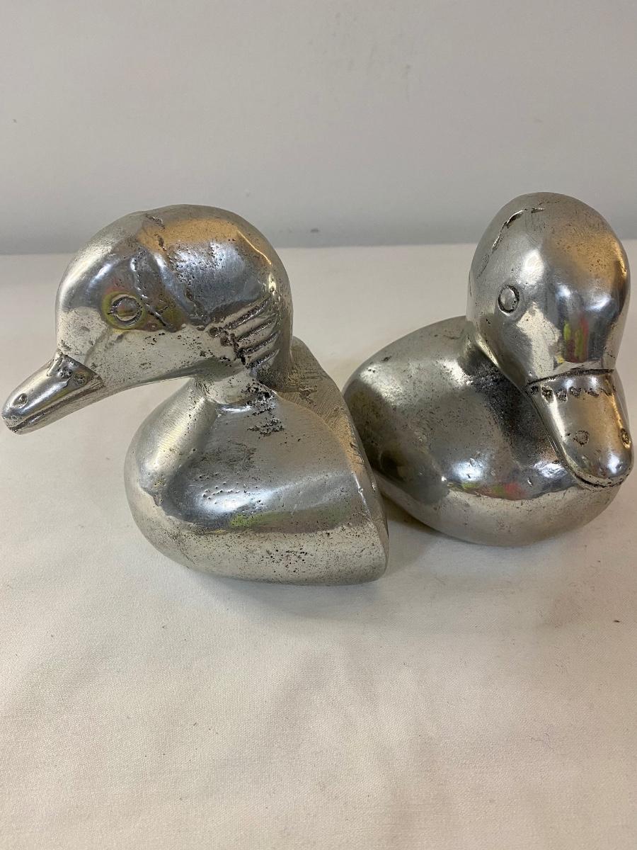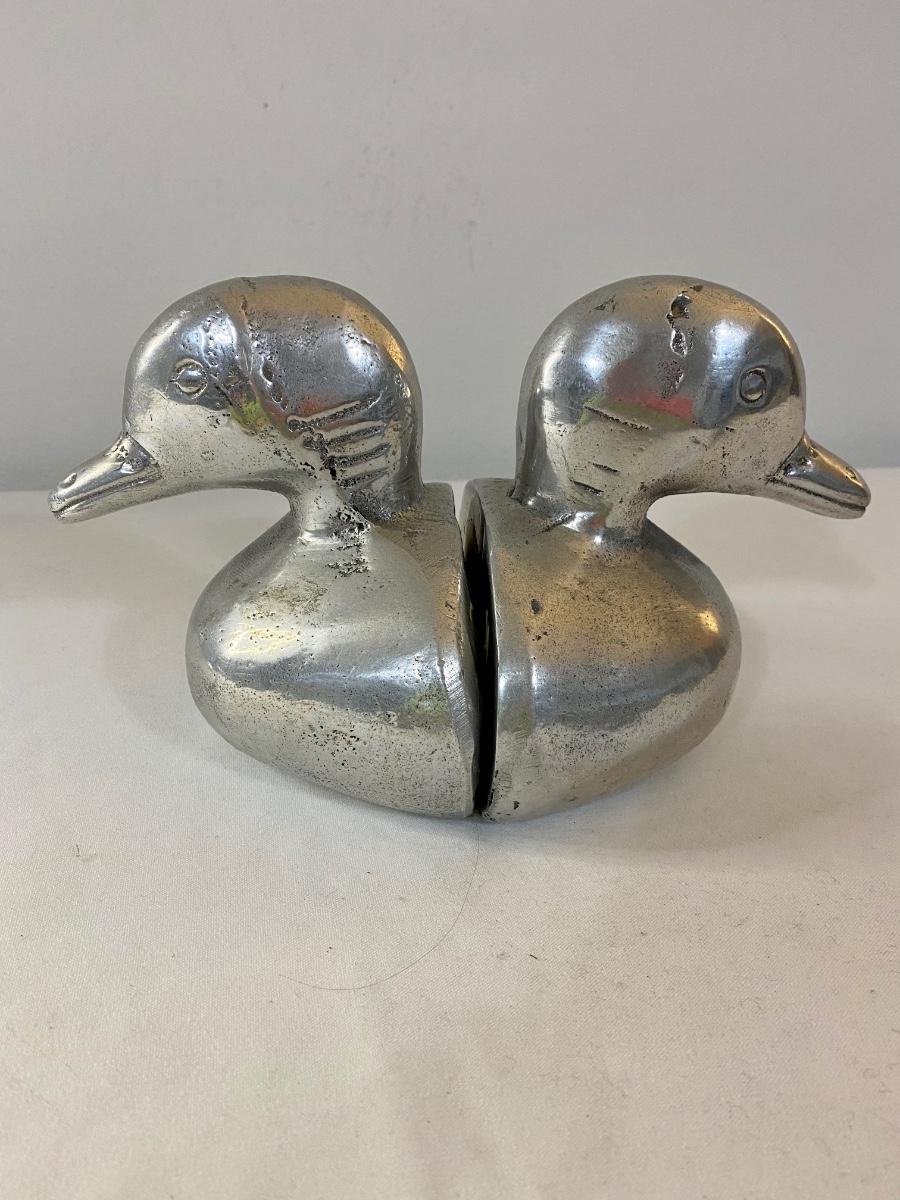 Set of Silver Duck book ends. 7X4 in. Very heavy.