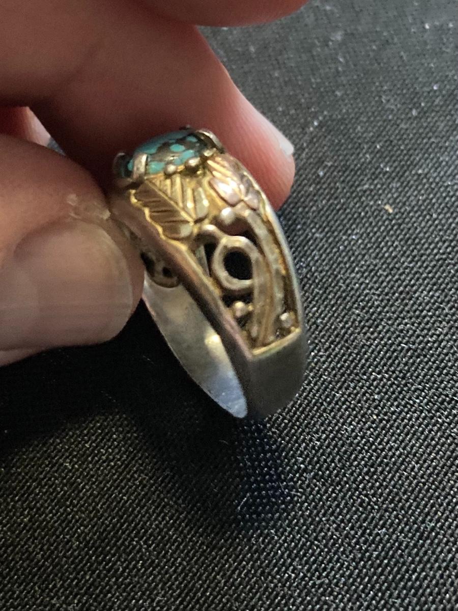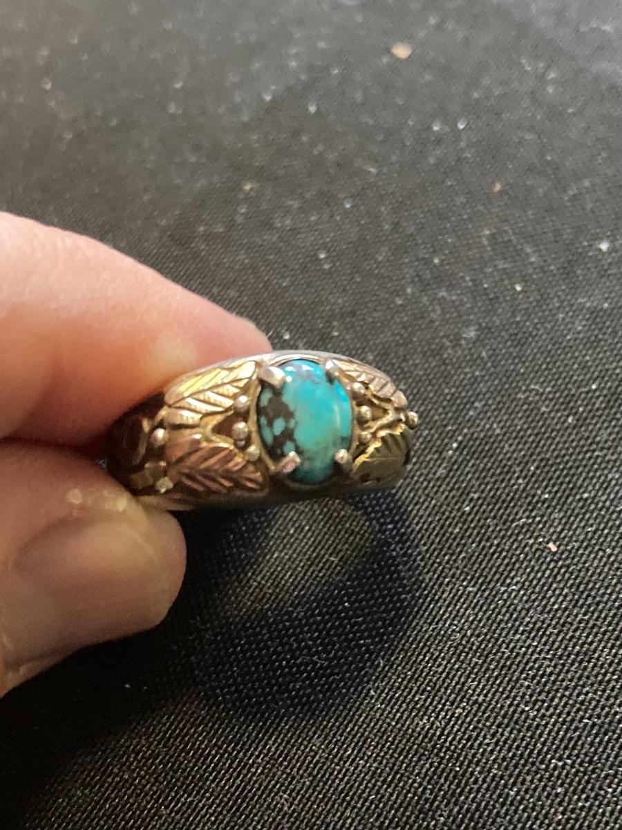 Vintage Silver Navajo Ring Size 7.5 with 2+ carat Turquoise Stone