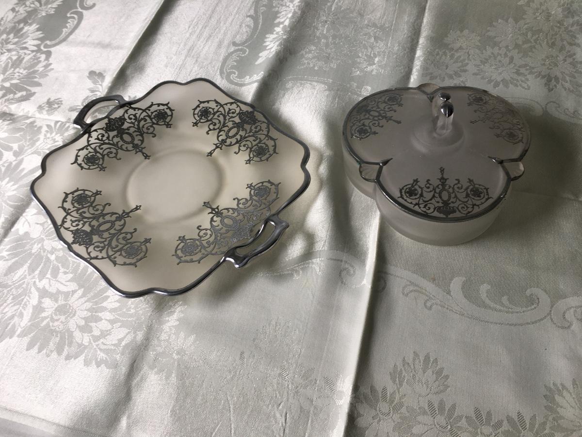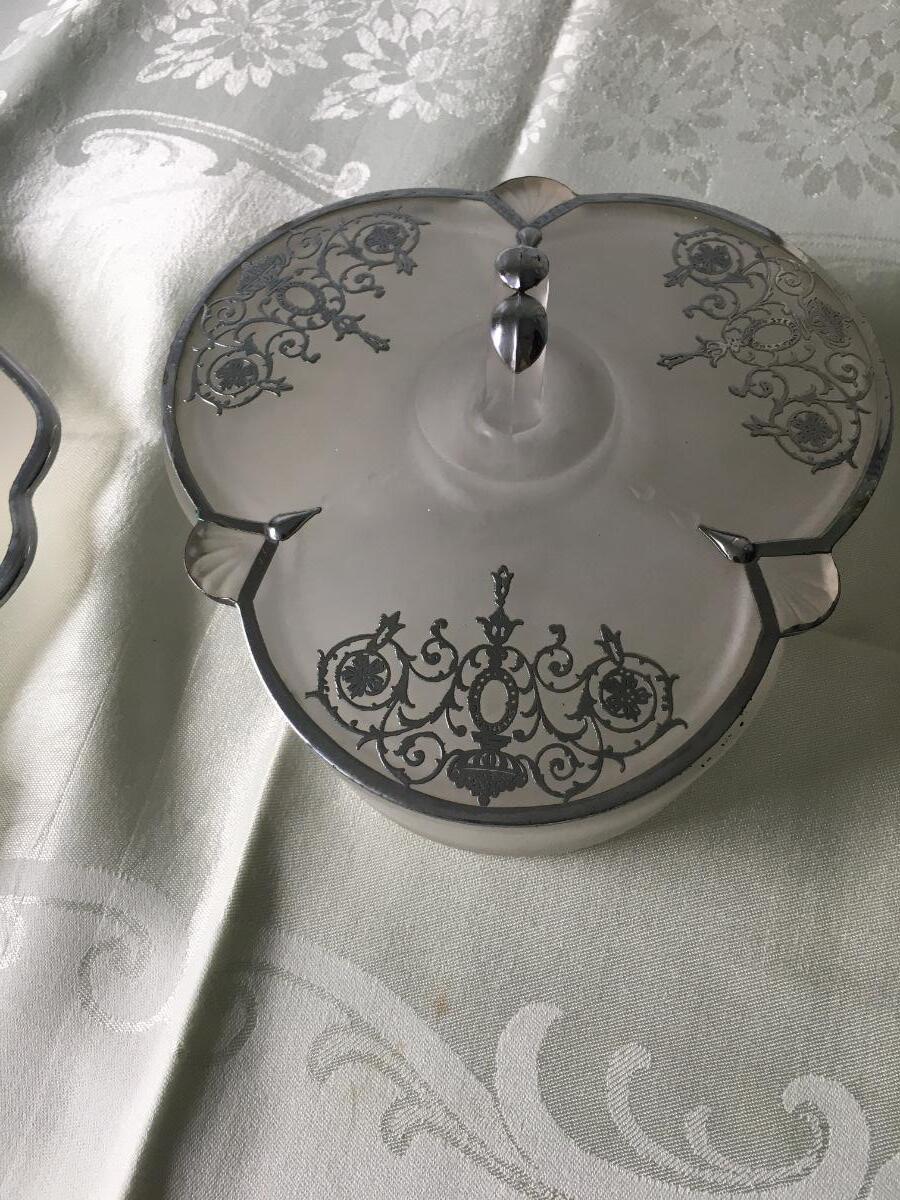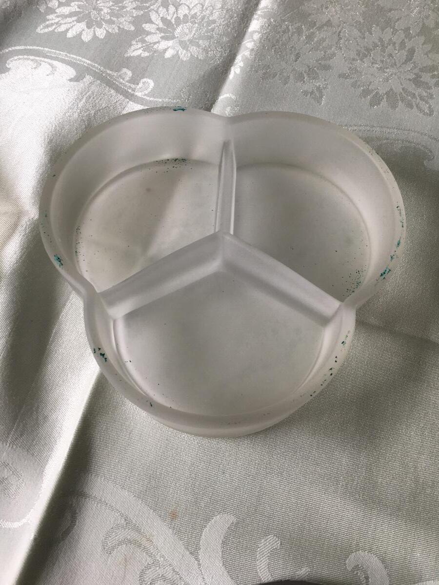 Set of overlay dish and covered dish with 3 separate compartments. Excellent condition.