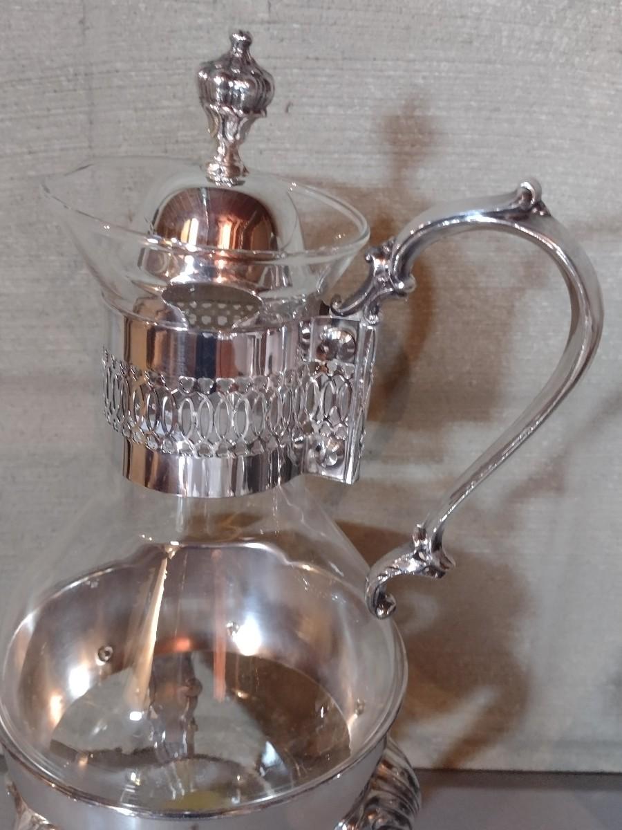 Vintage Silver Plate and Glass Coffee Pot with Warmer Stand