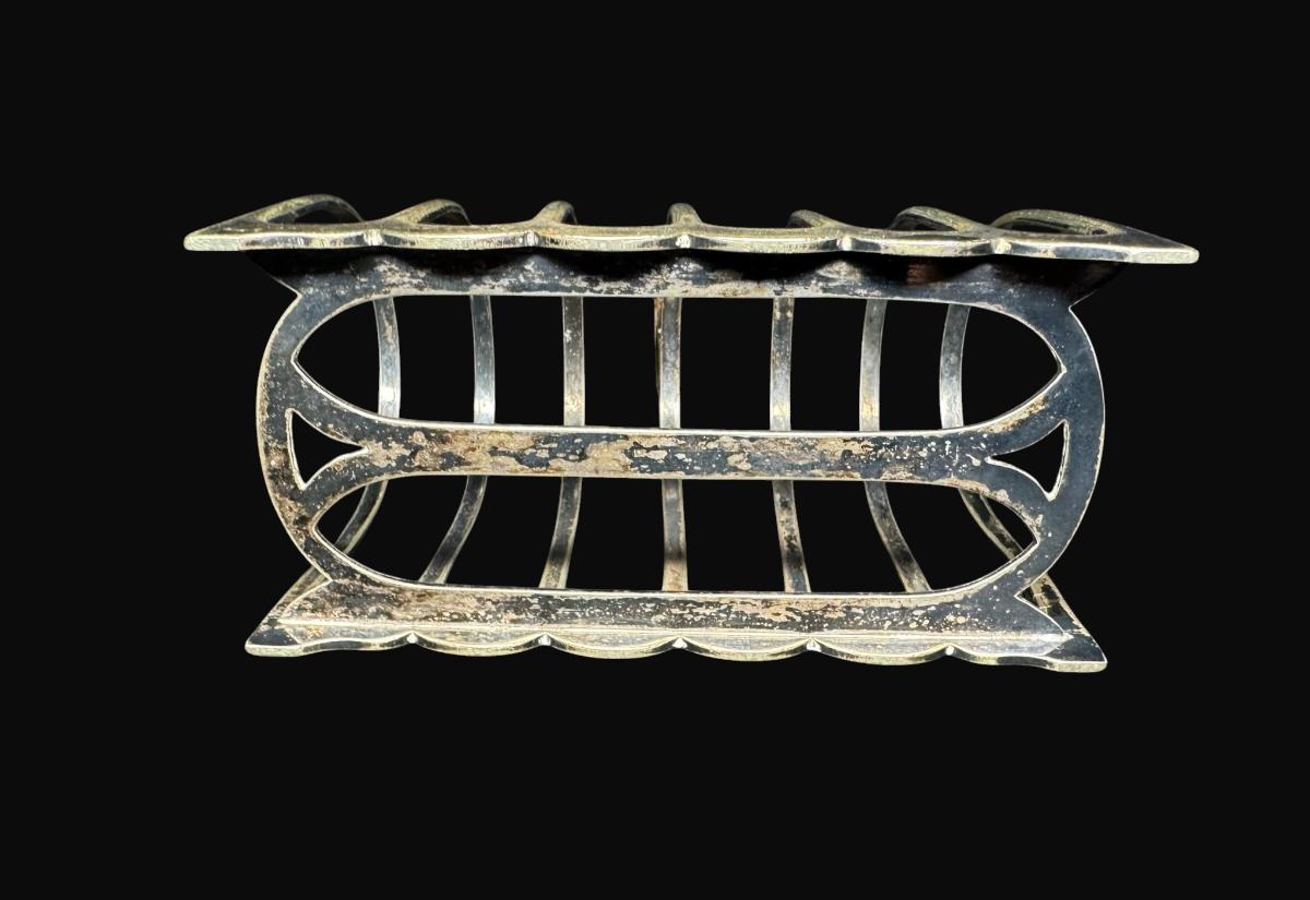 Includes a vintage English toast rack, a vintage Wear-Ever aluminum milk jug, and an antique English tea pot. Total of three pieces. Measurement of tallest: 8.5”H. [CS]