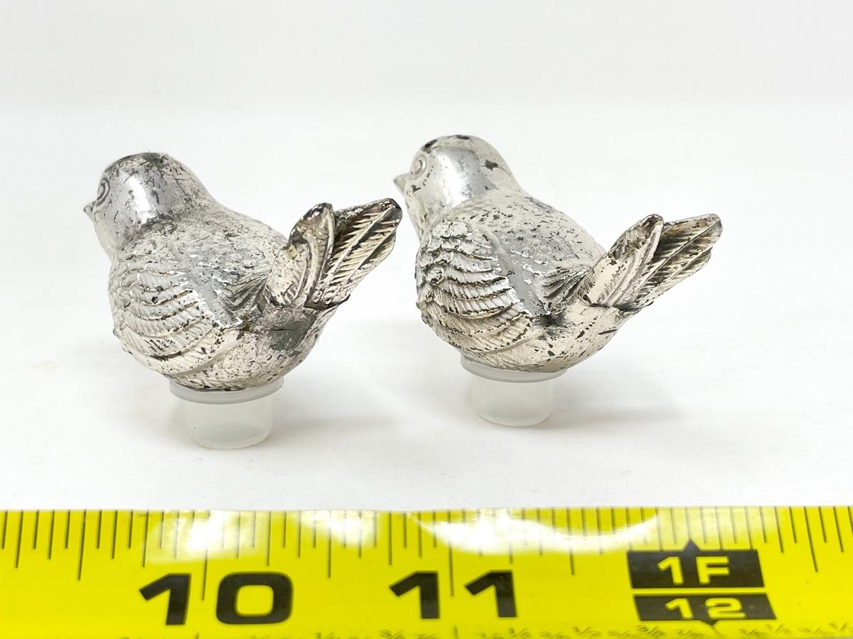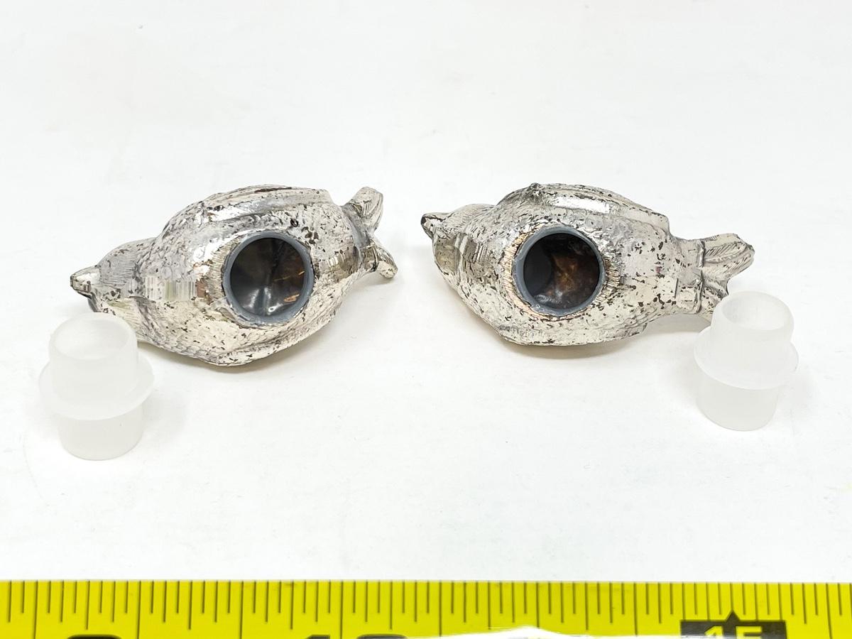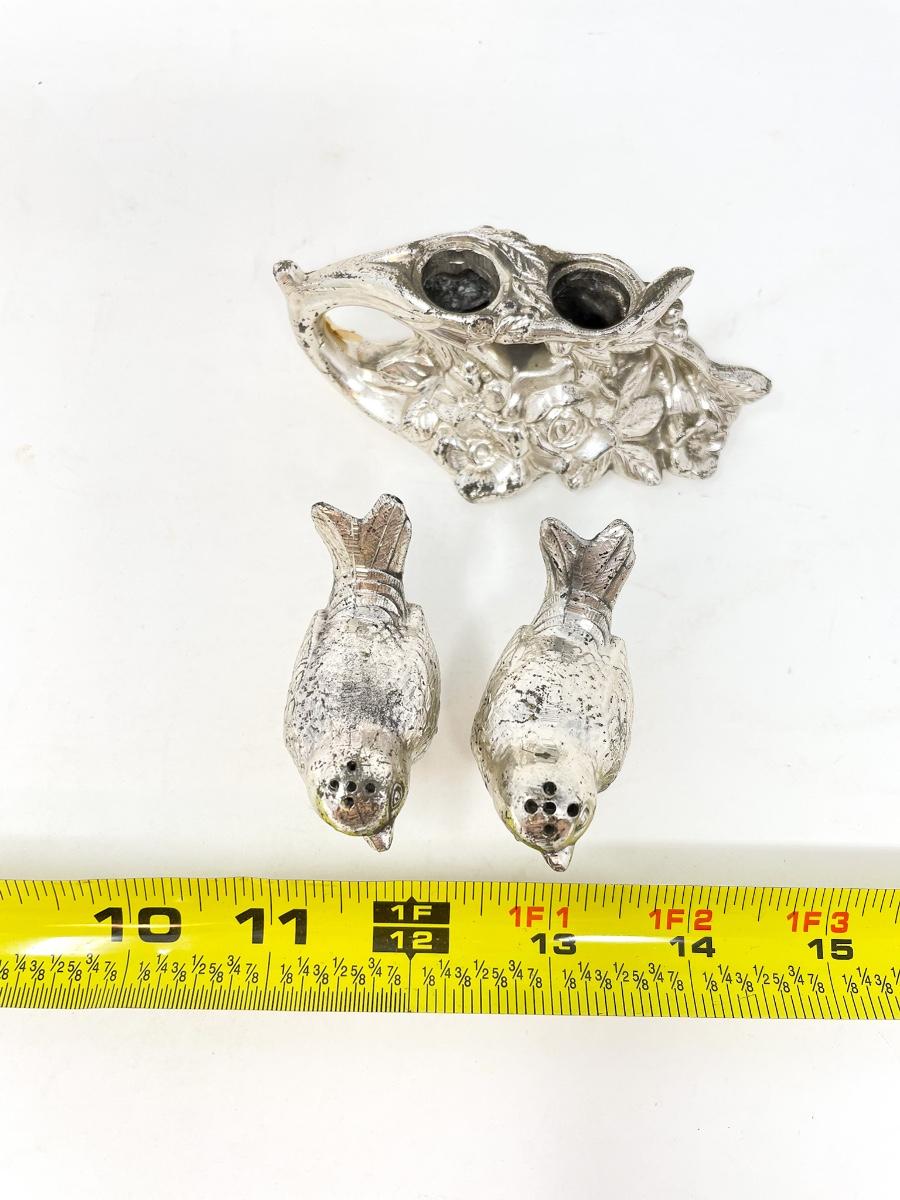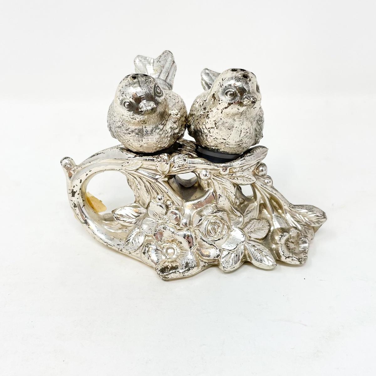 VINTAGE SILVER PLATE BIRD SALT AND PEPPER SHAKERS WITH HOLDER