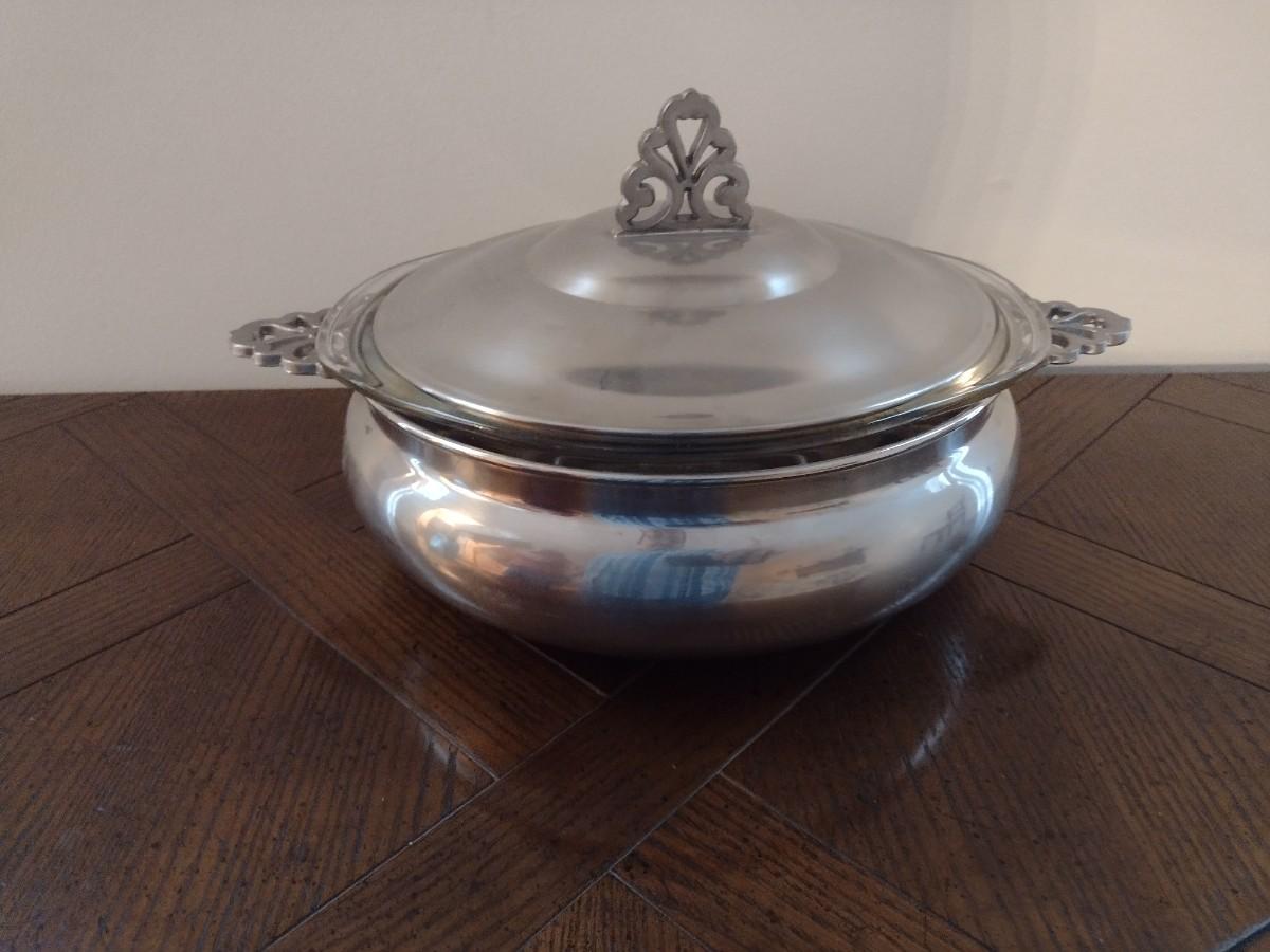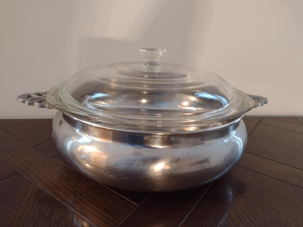 Vintage Silver Plate Casserole Dish with Glass Pyrex Lid
