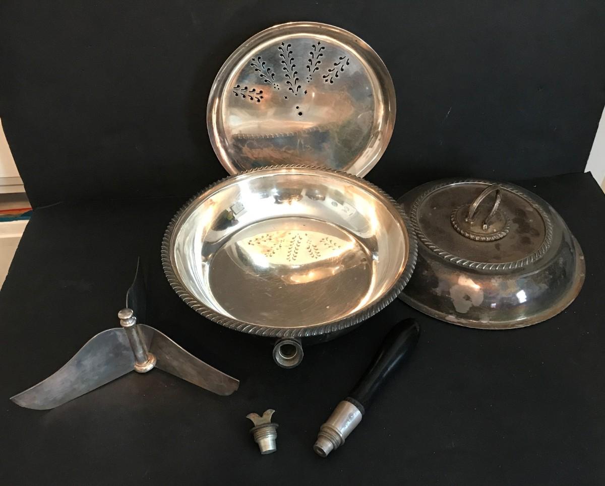 Vintage Silver plate Chafing Dish ~ Removable handle to fill with hot water and cap