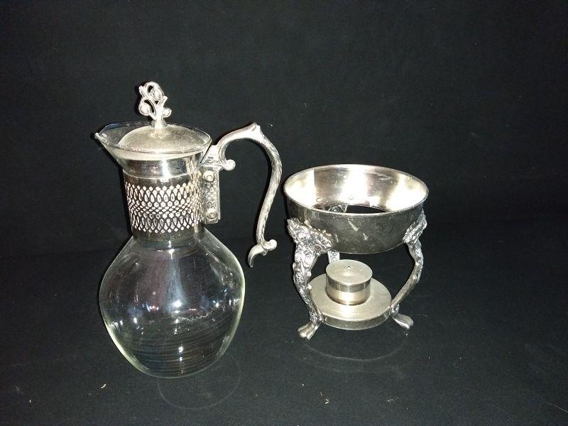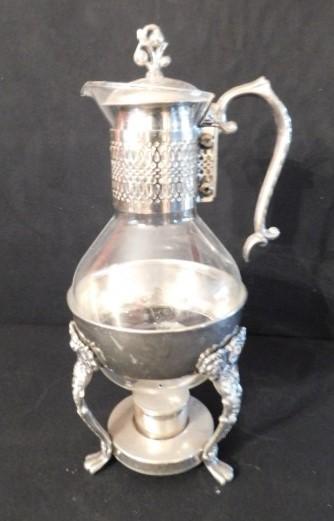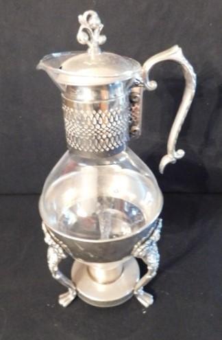 Vintage Silver Plate Coffee or Hot Water Pitcher with Sterno Stand