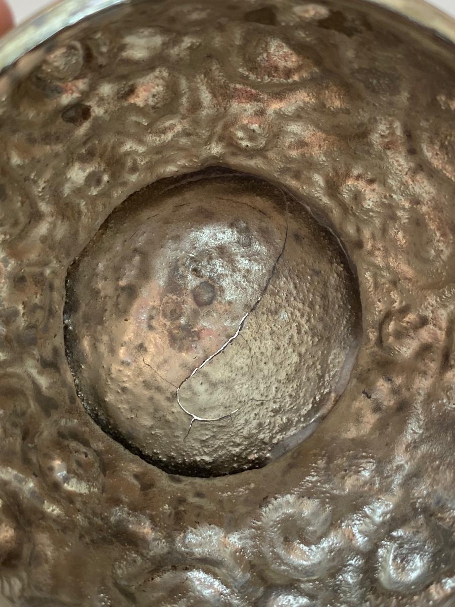 Vintage Silver Plate Floral Embossed Lidded Sugar Jam Jelly Dish w Glass Bowl & Spoon. Glass bowl can be removed for filling and cleaning. Matching floral handled spoon. Displays nice and is useable but there is a crack in the base of the silver plate bowl.