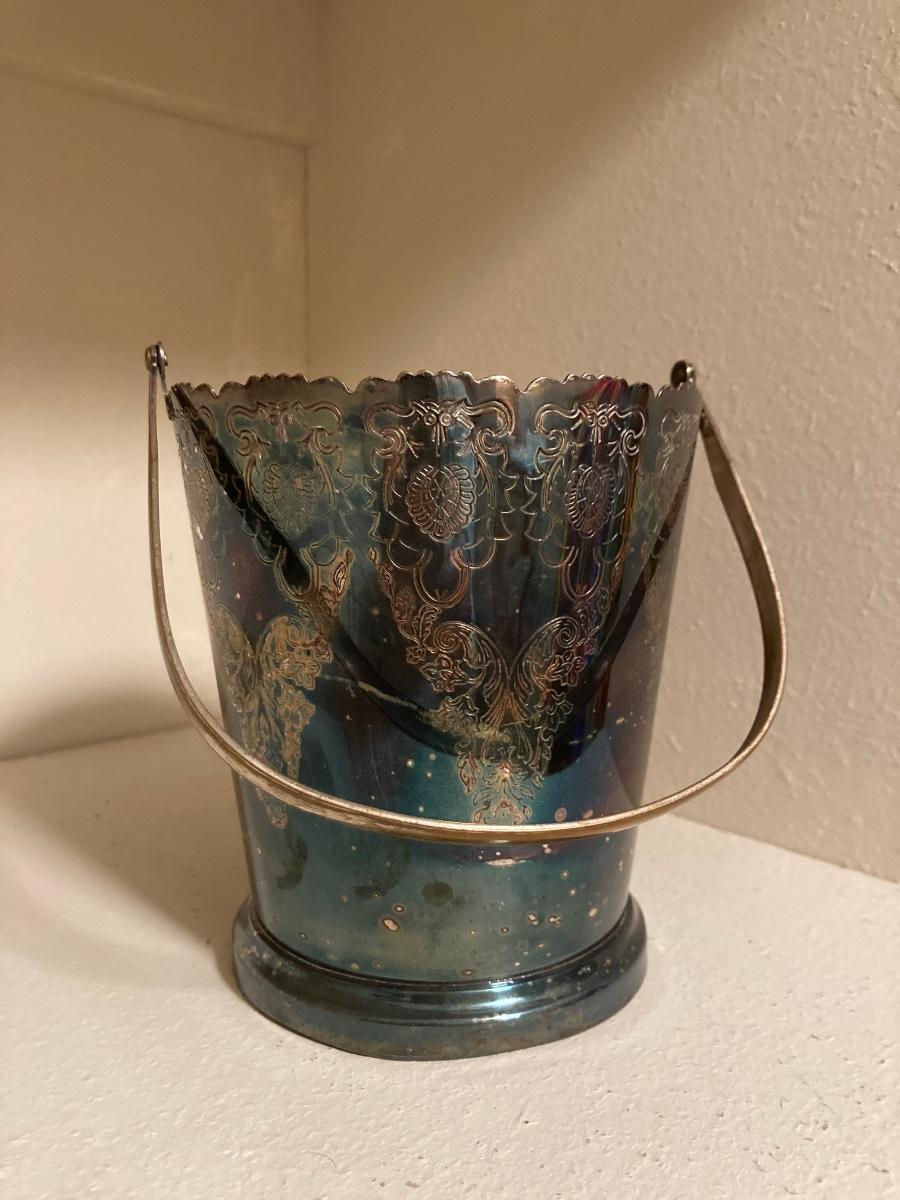 Vintage silver plate handled bucket. Possibly an ice bucket or vase. Insert (see picture) VG condition.