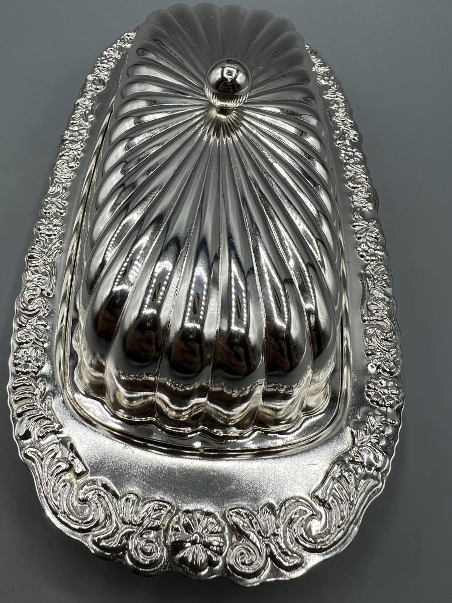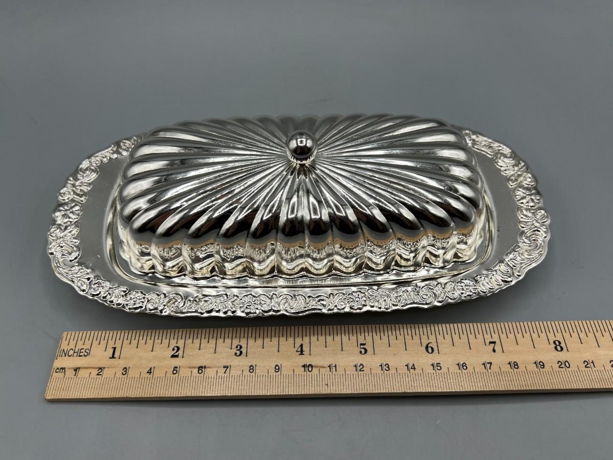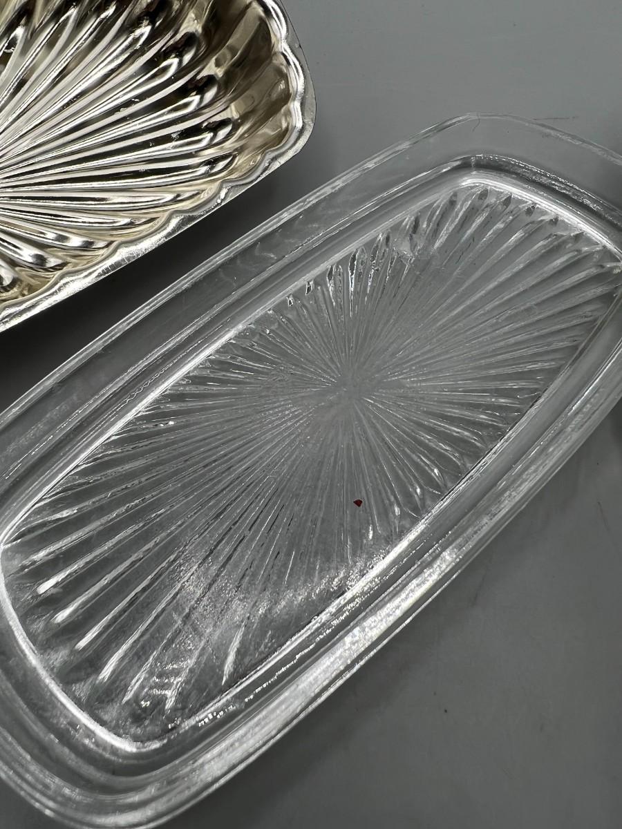 Vintage Silver Plate Lidded Butter Dish with Glass Bottom Tray