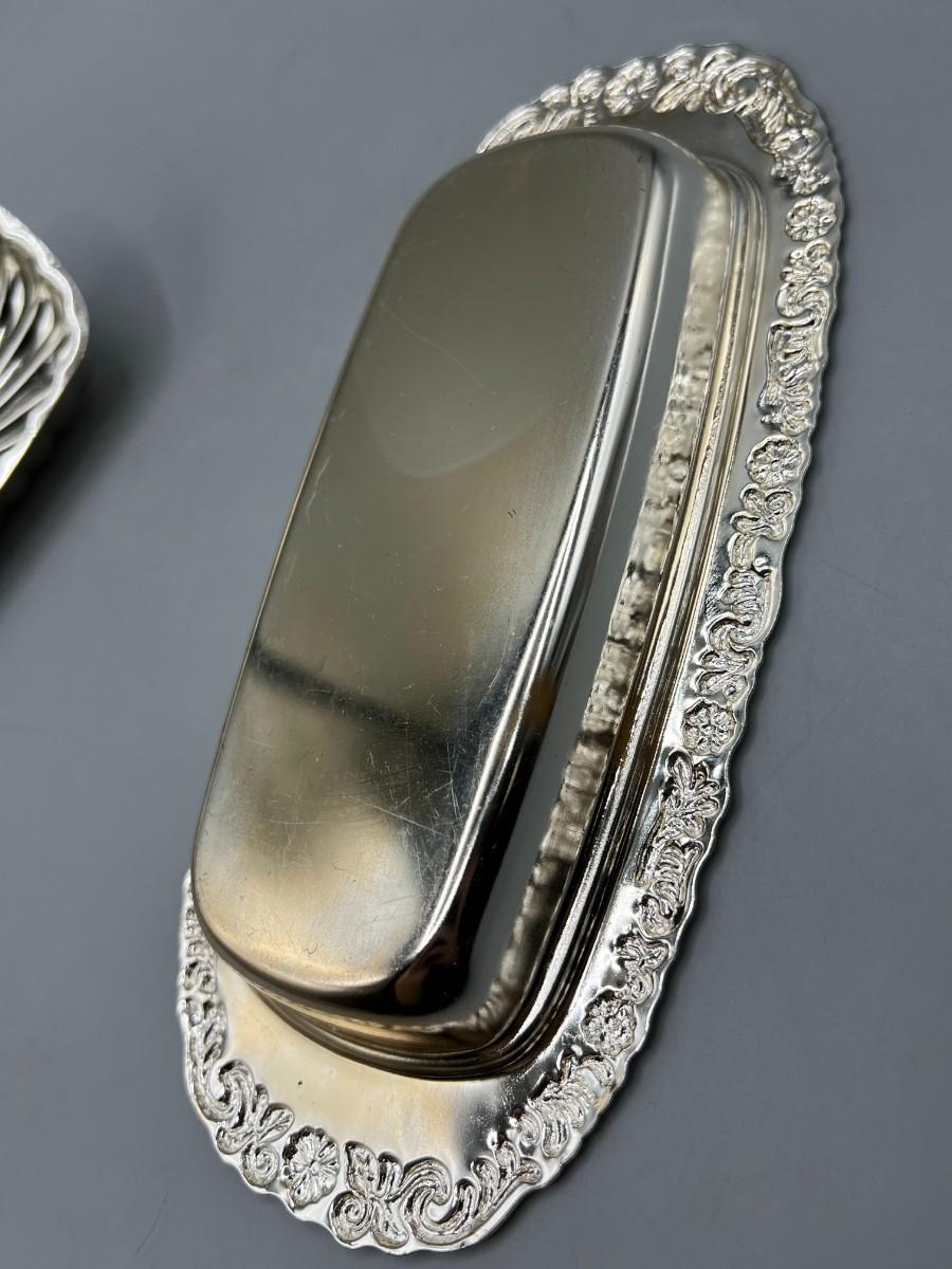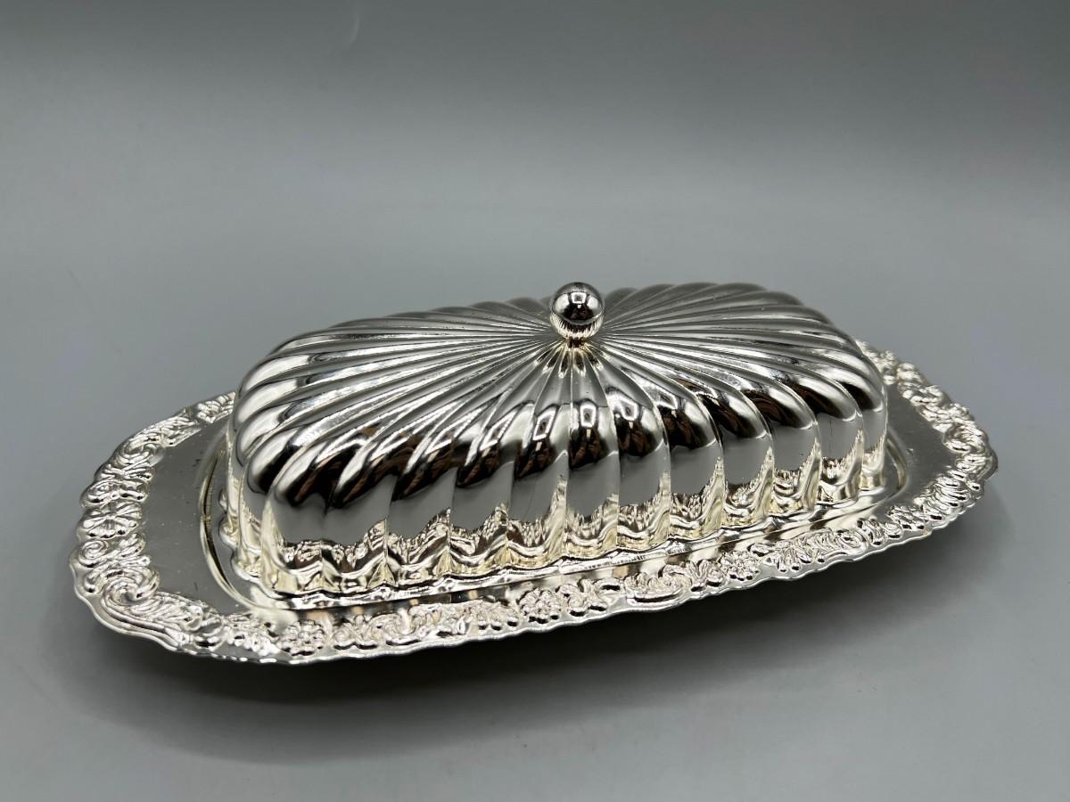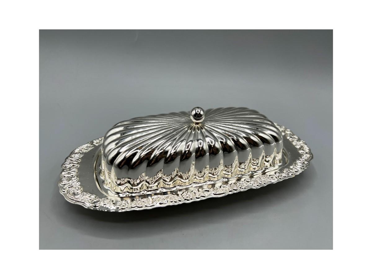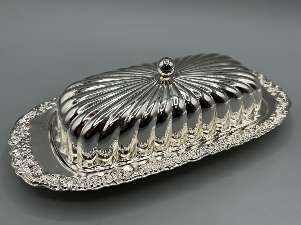 Vintage Silver Plate Lidded Butter Dish with Glass Bottom Tray