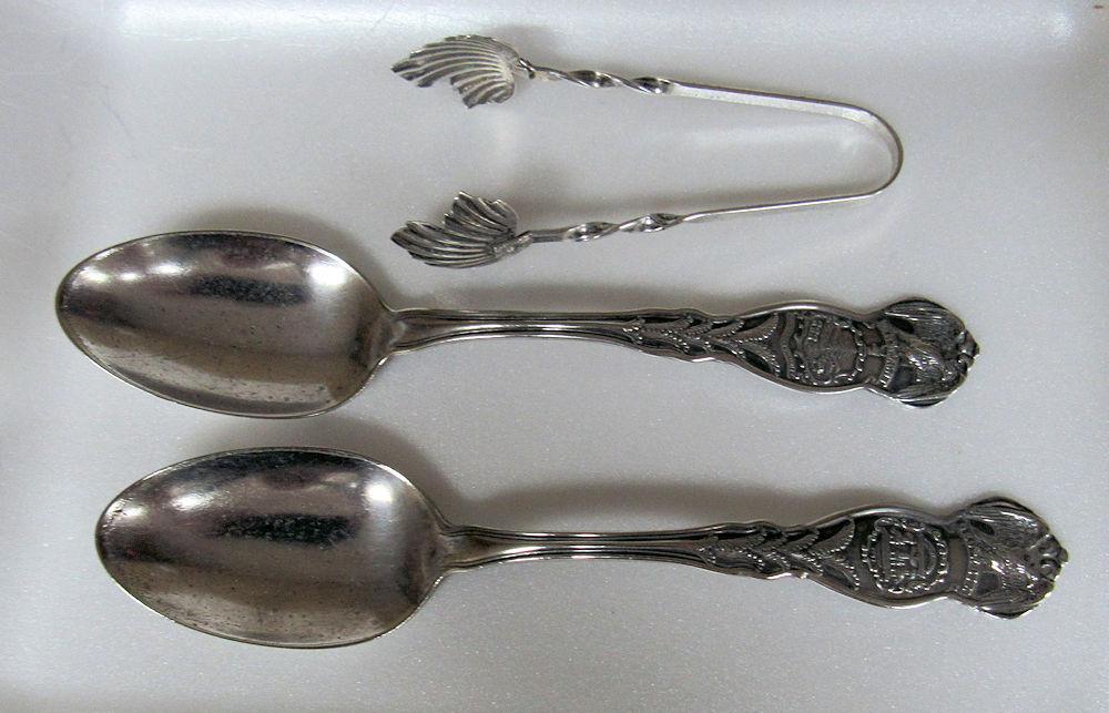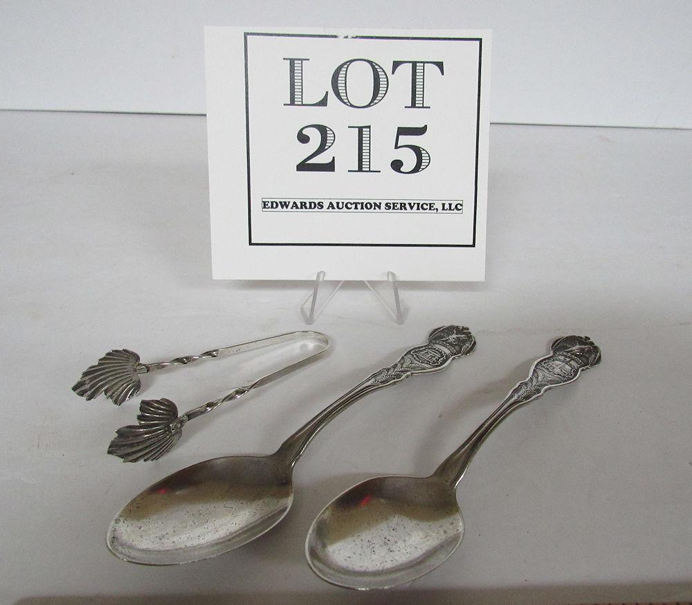 Vintage Silver Plate Sugar Tongs and Georgia, Vermont Spoons