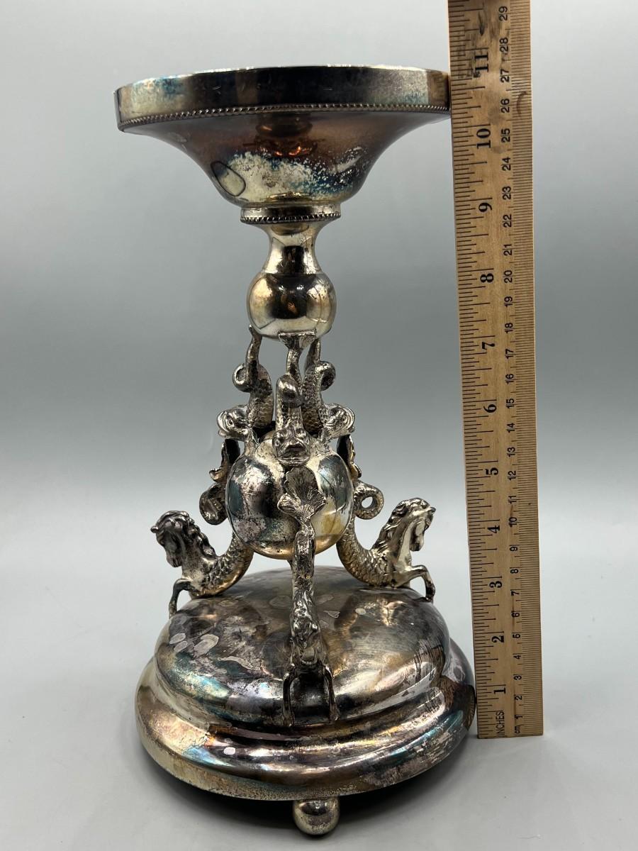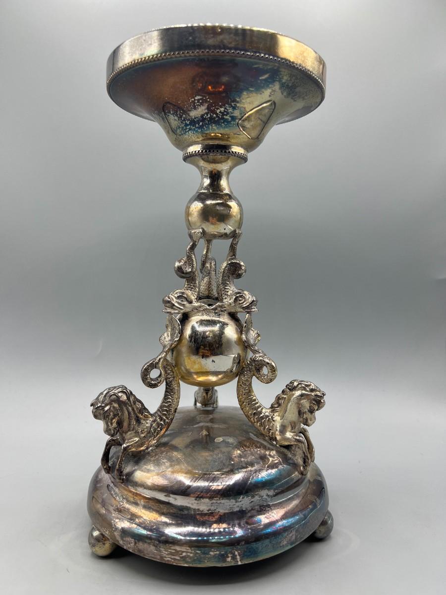 Vintage Silver Plate Victorian Sea Horse Fish Compote Centerpiece