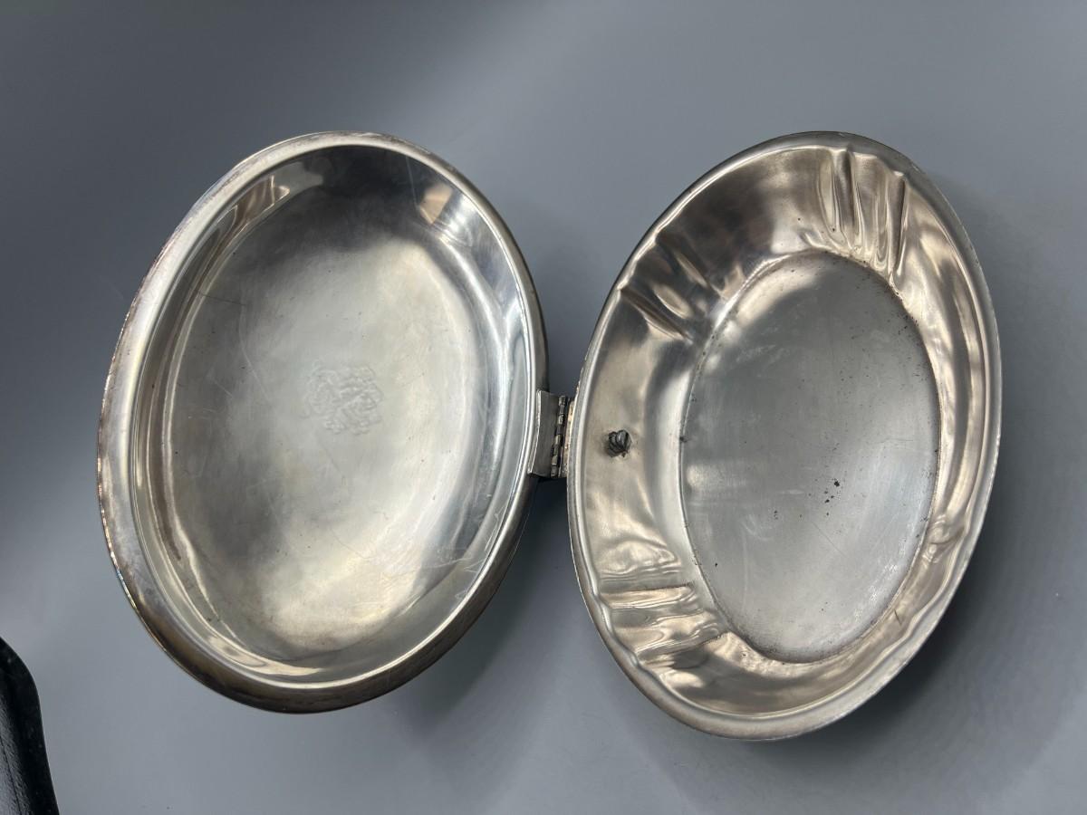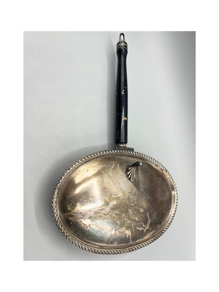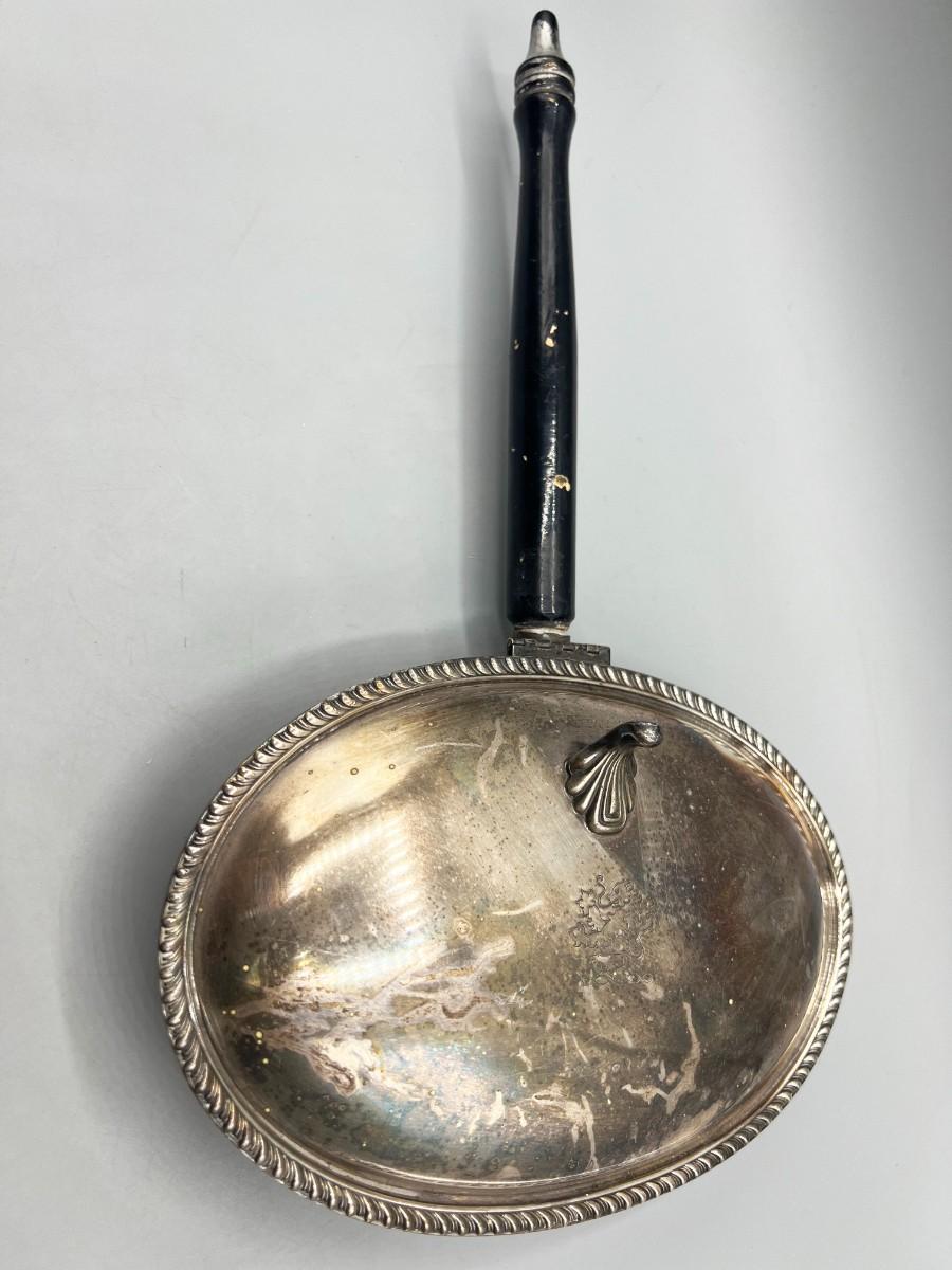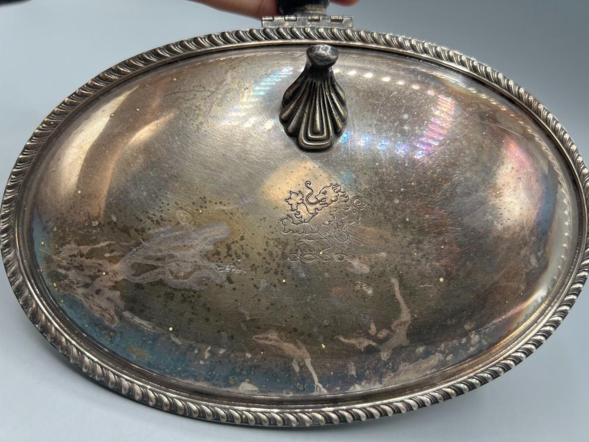 Vintage Silver Plated Crumb Catcher Hot Dish Etched Dragon with Wooden Handle