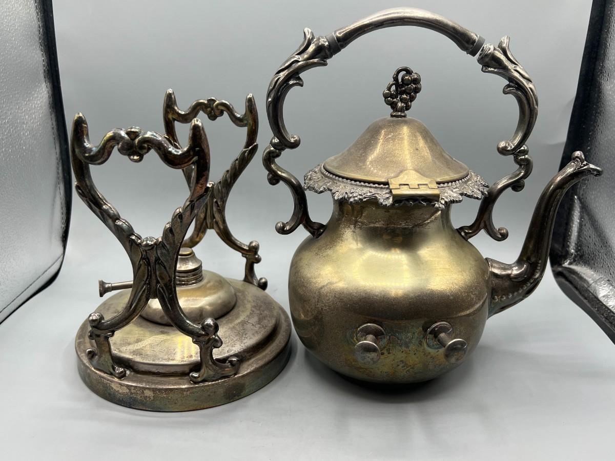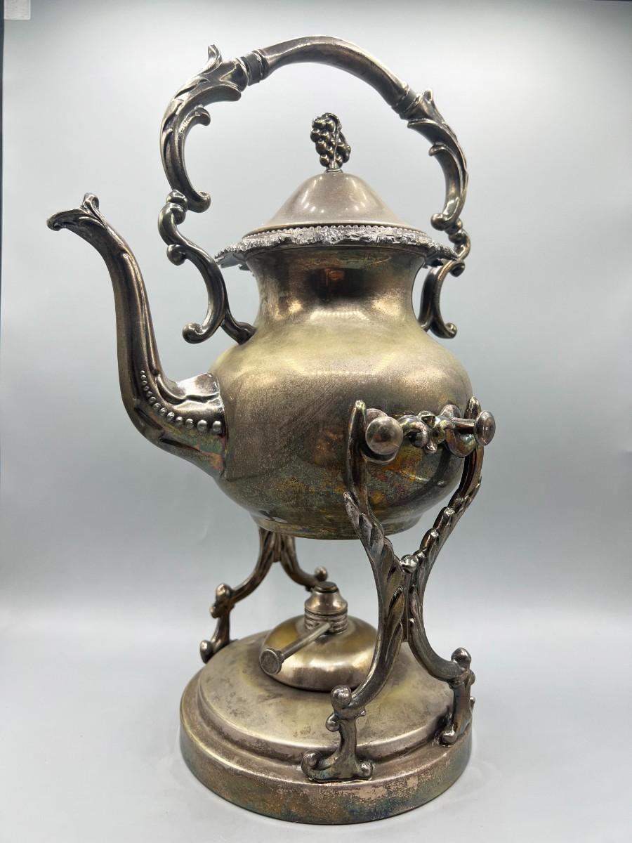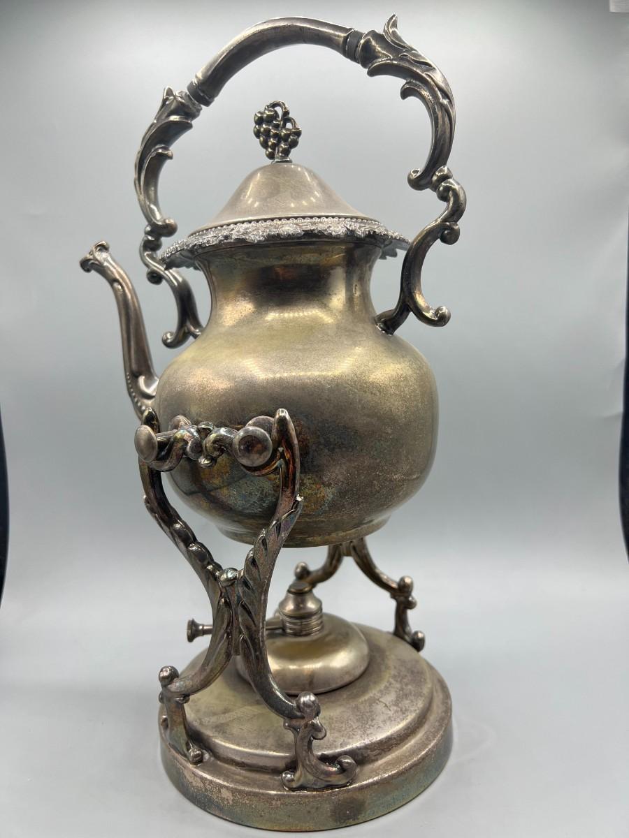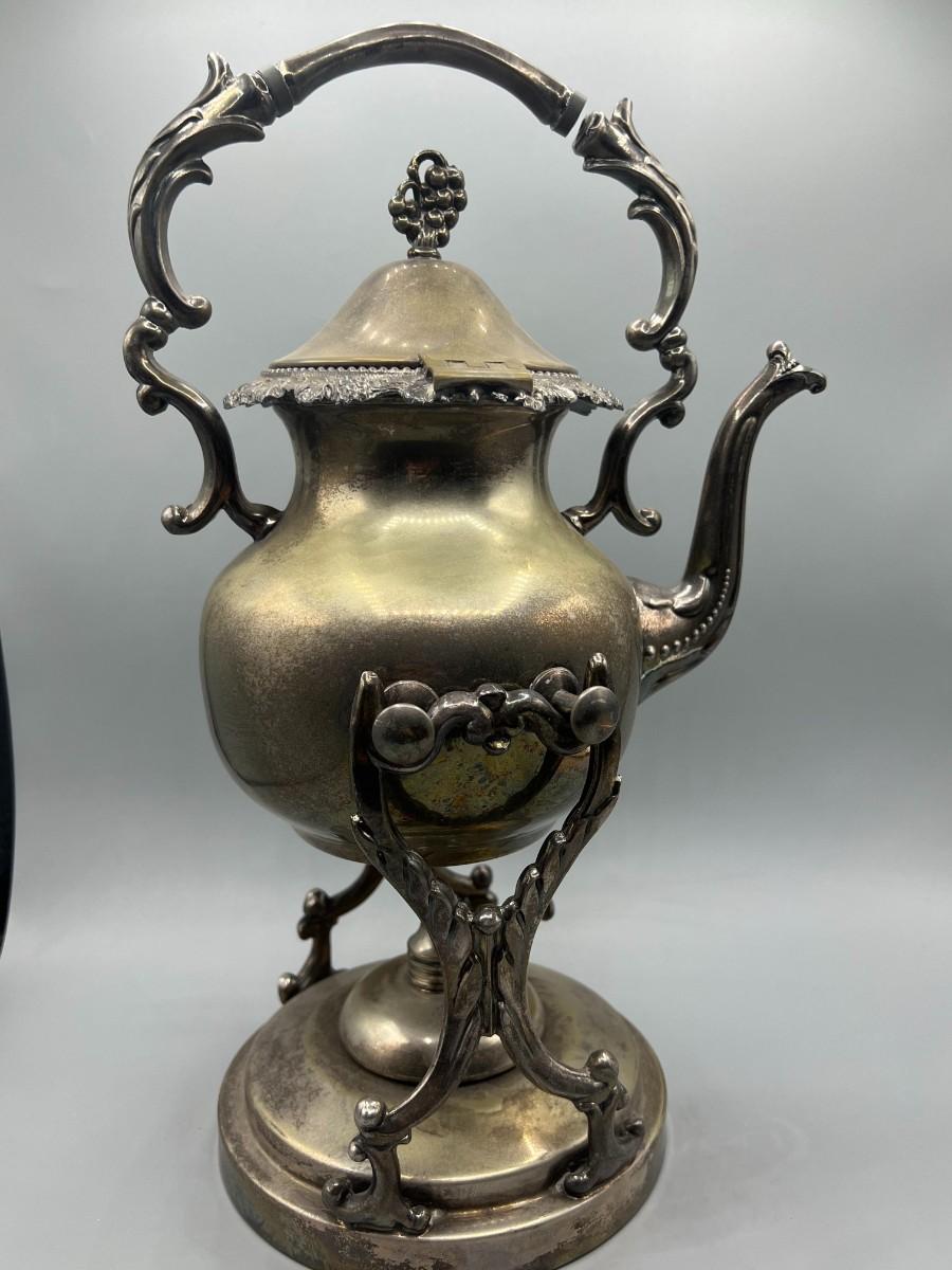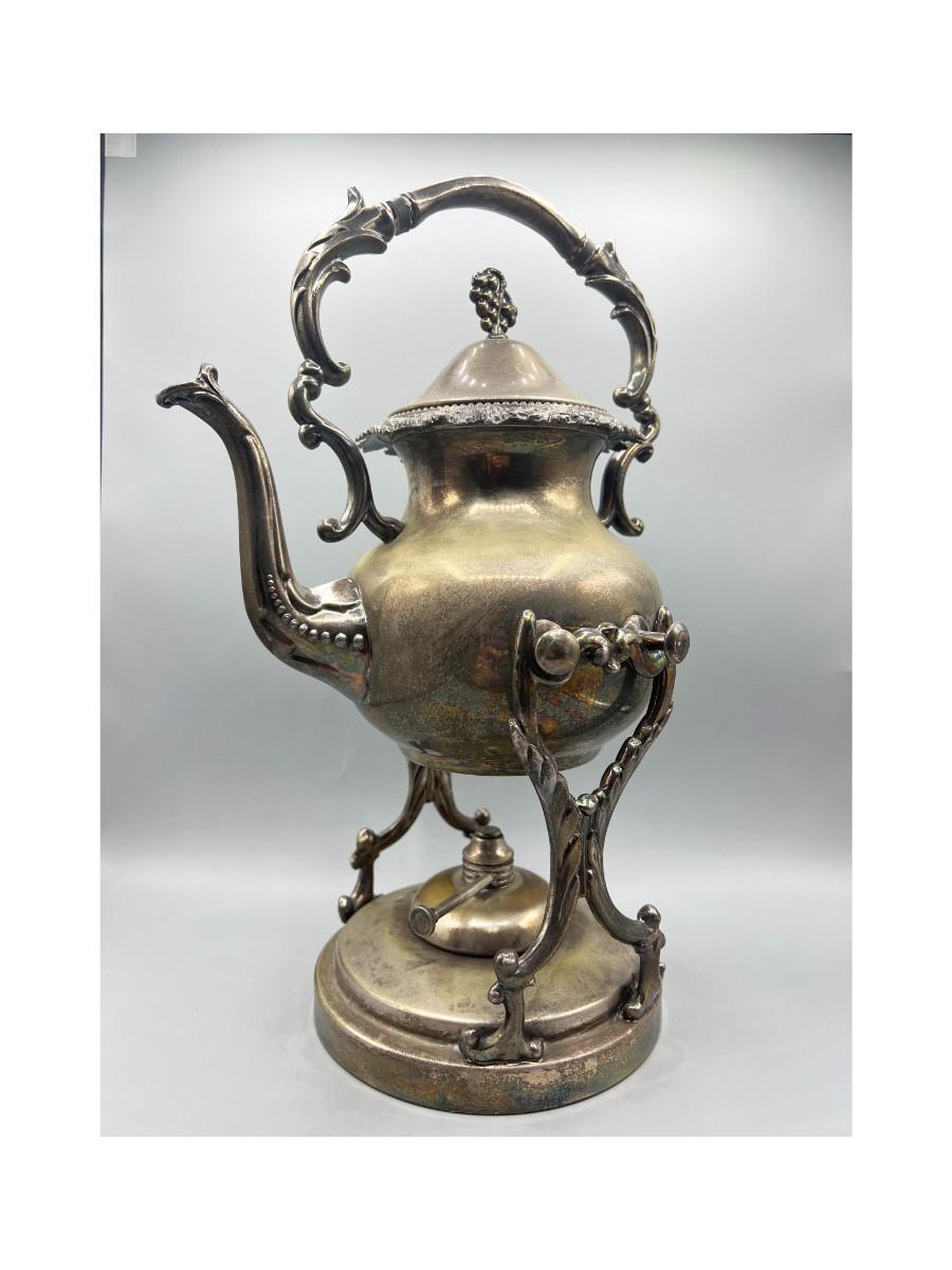 Vintage Silver Plated Displayable Victorian Style Tilting Teapot & Burner