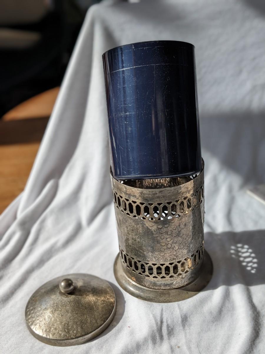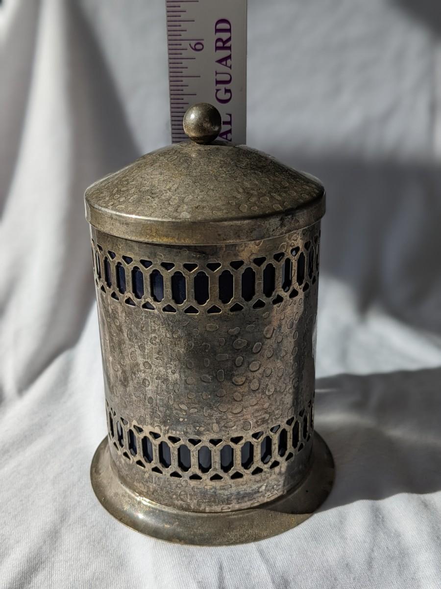 Vintage Silver Plated Filigree Canister with Lid and Plastic Insert
