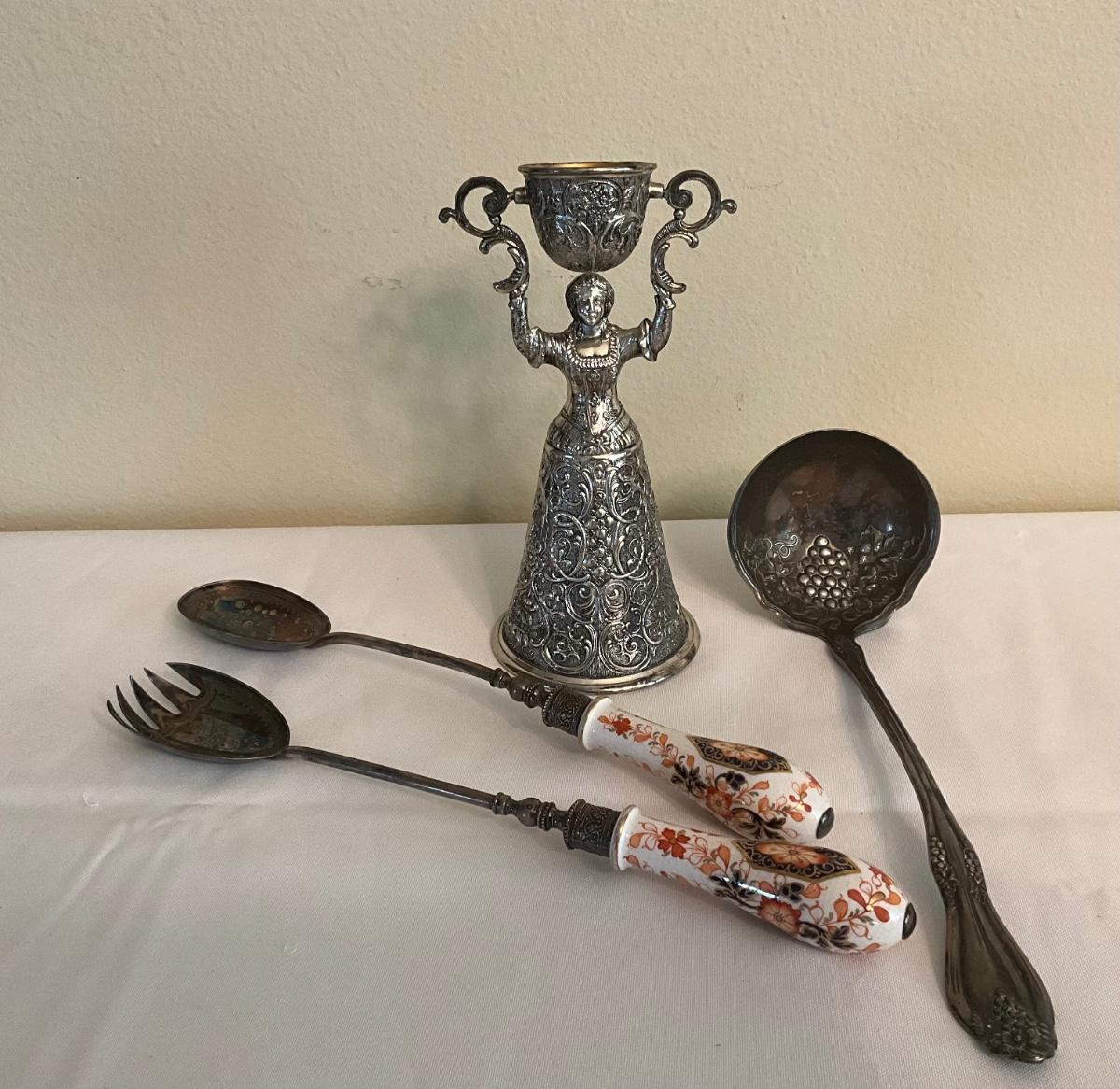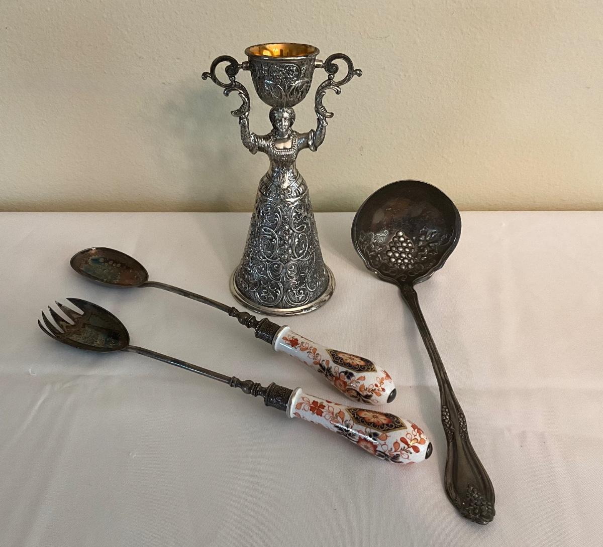 Vintage Silver plated wedding toasting Chalice-German W/utensils