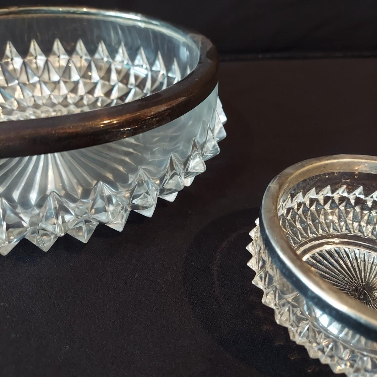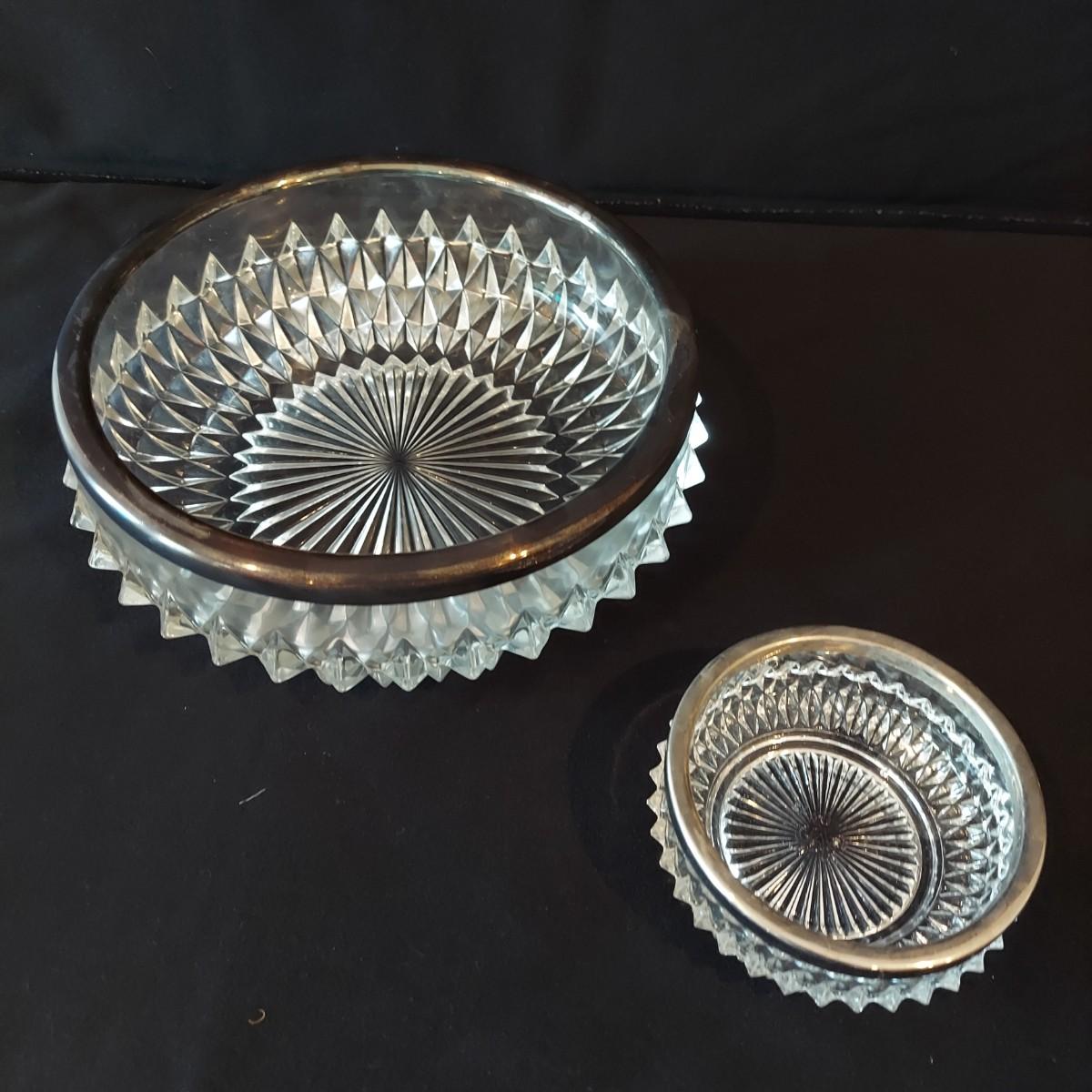 Vintage Silver Rimmed Crystal Serving Dishes (K-BBL)