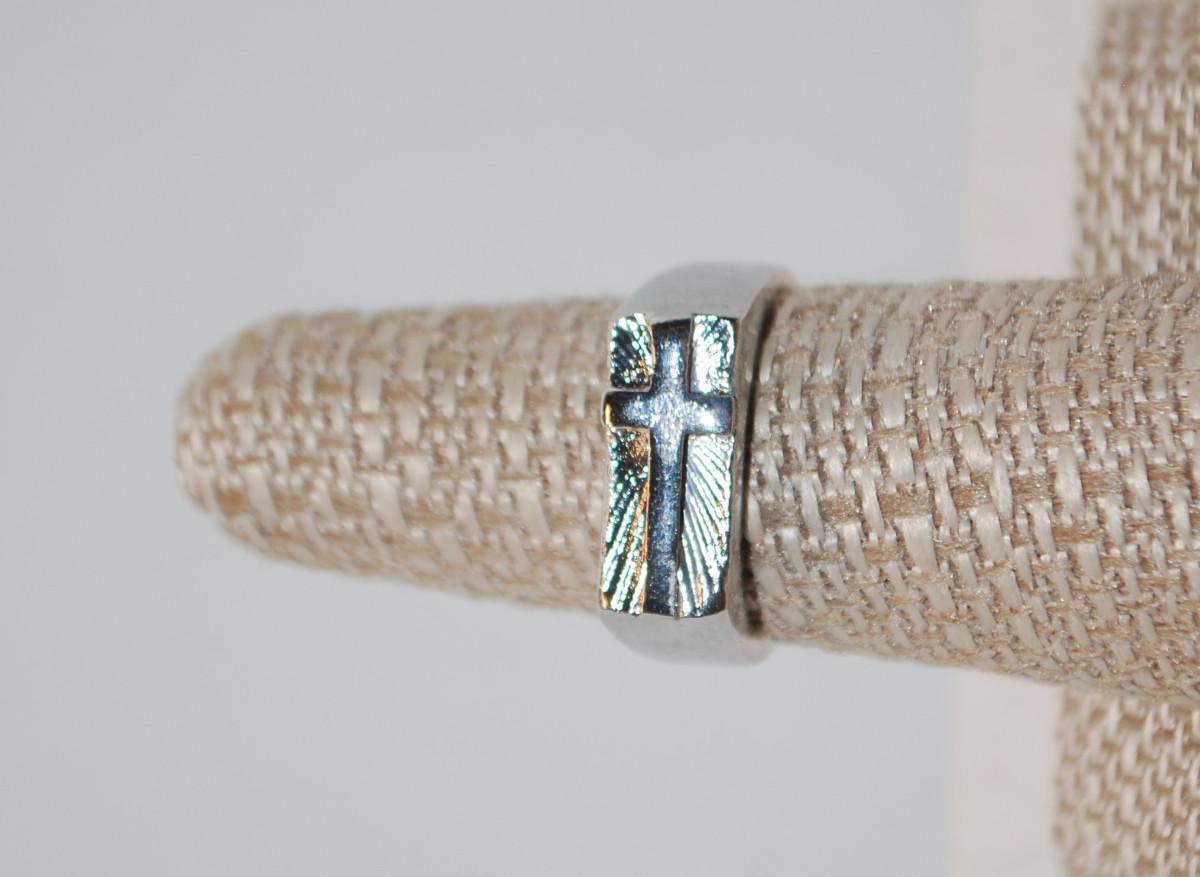 Size 7 ¾ Vintage Silver Seal Holy Light Cross Ring (8.1g)
