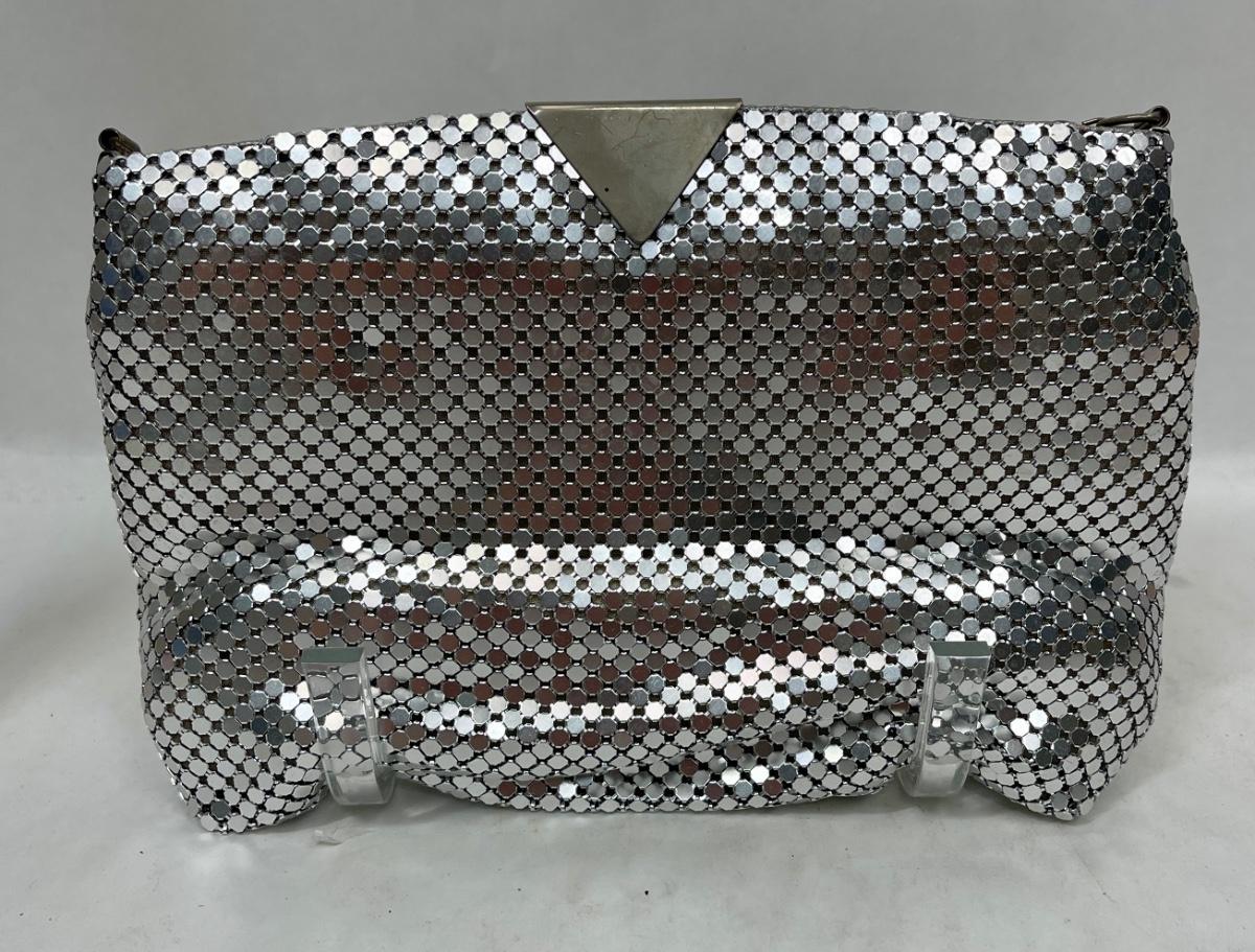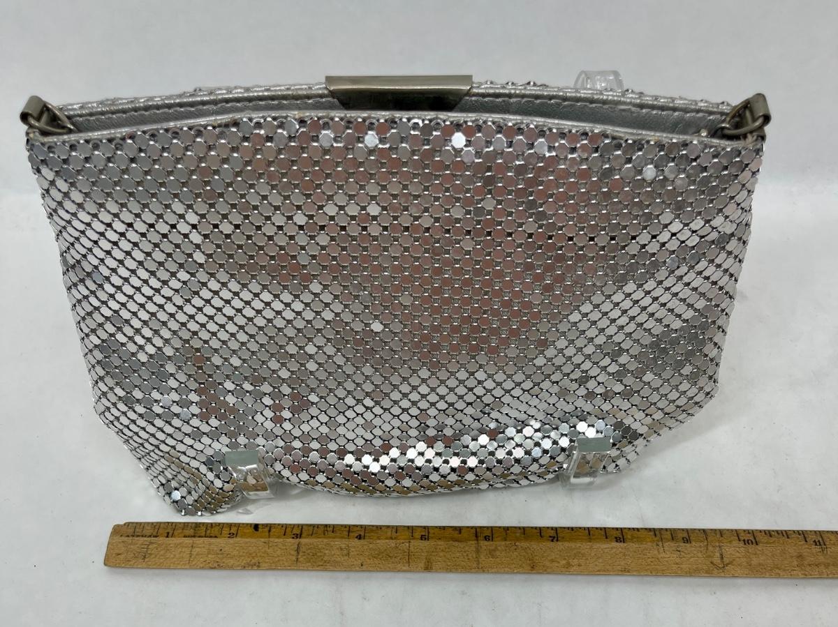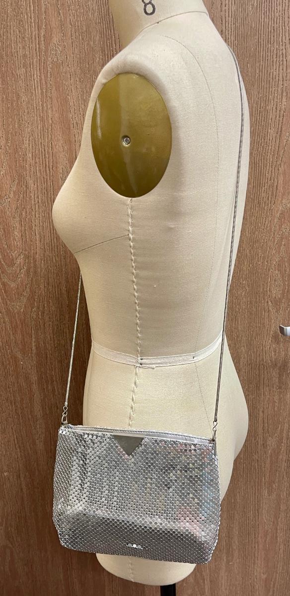 Vintage Silver Sequin Evening Bag with Crossbody Strap